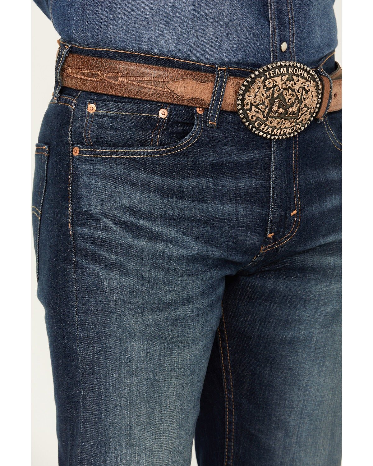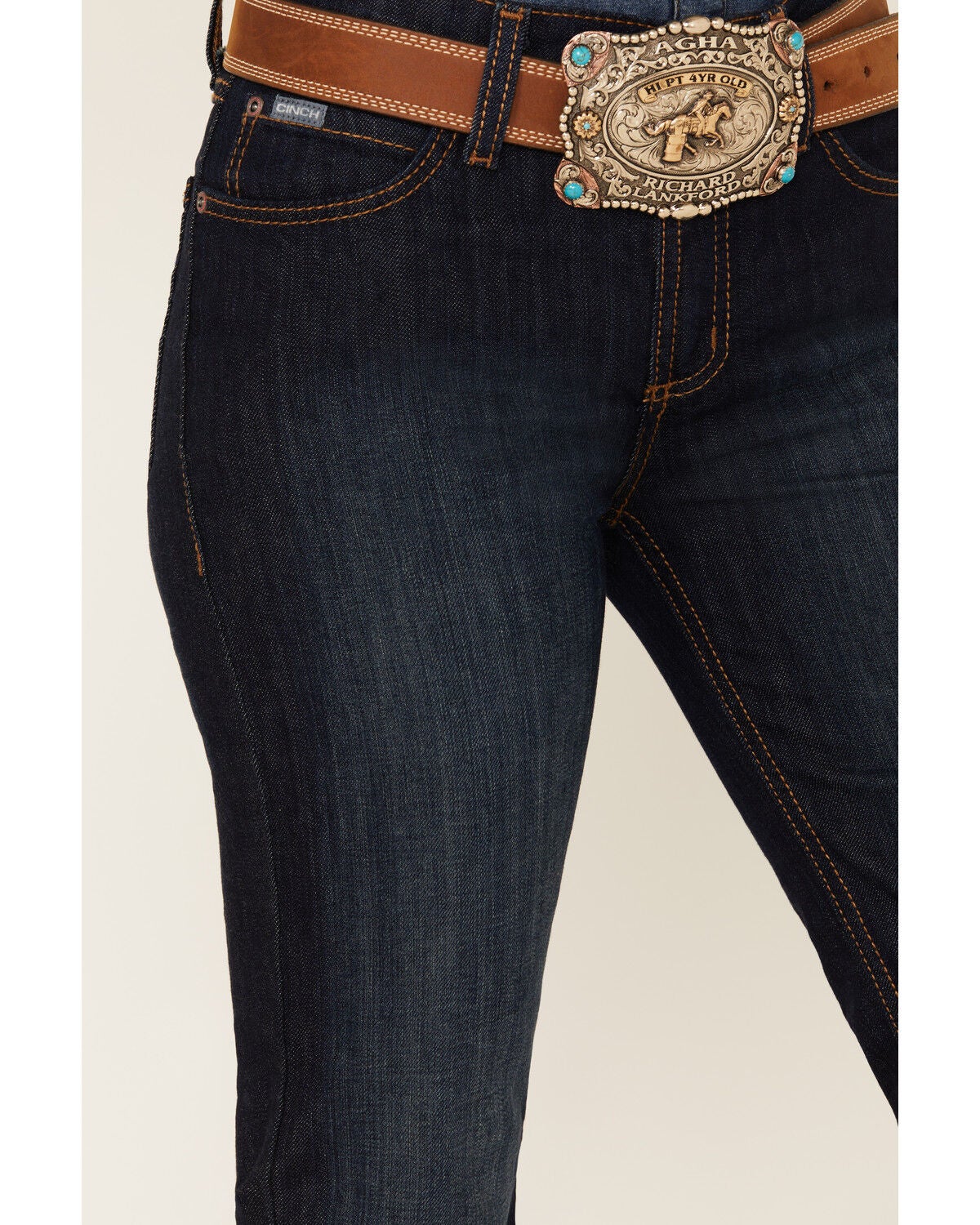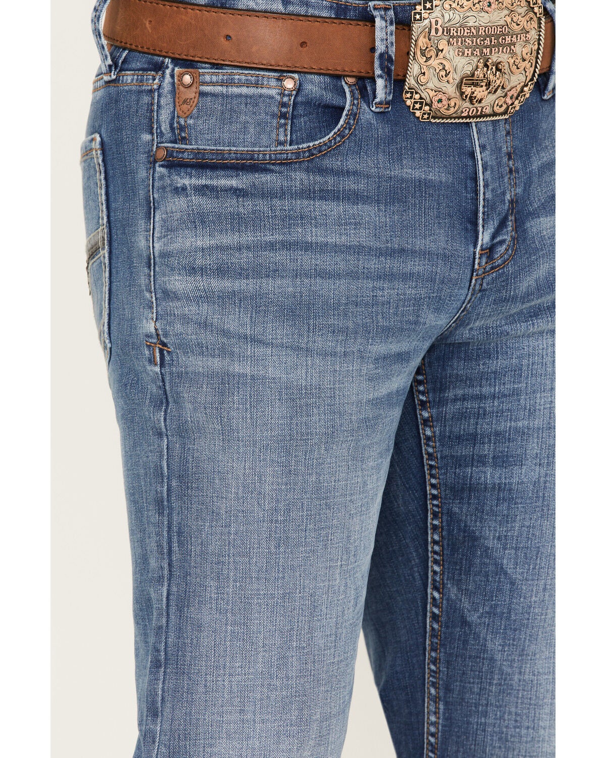 buckle slim bootcut jeans