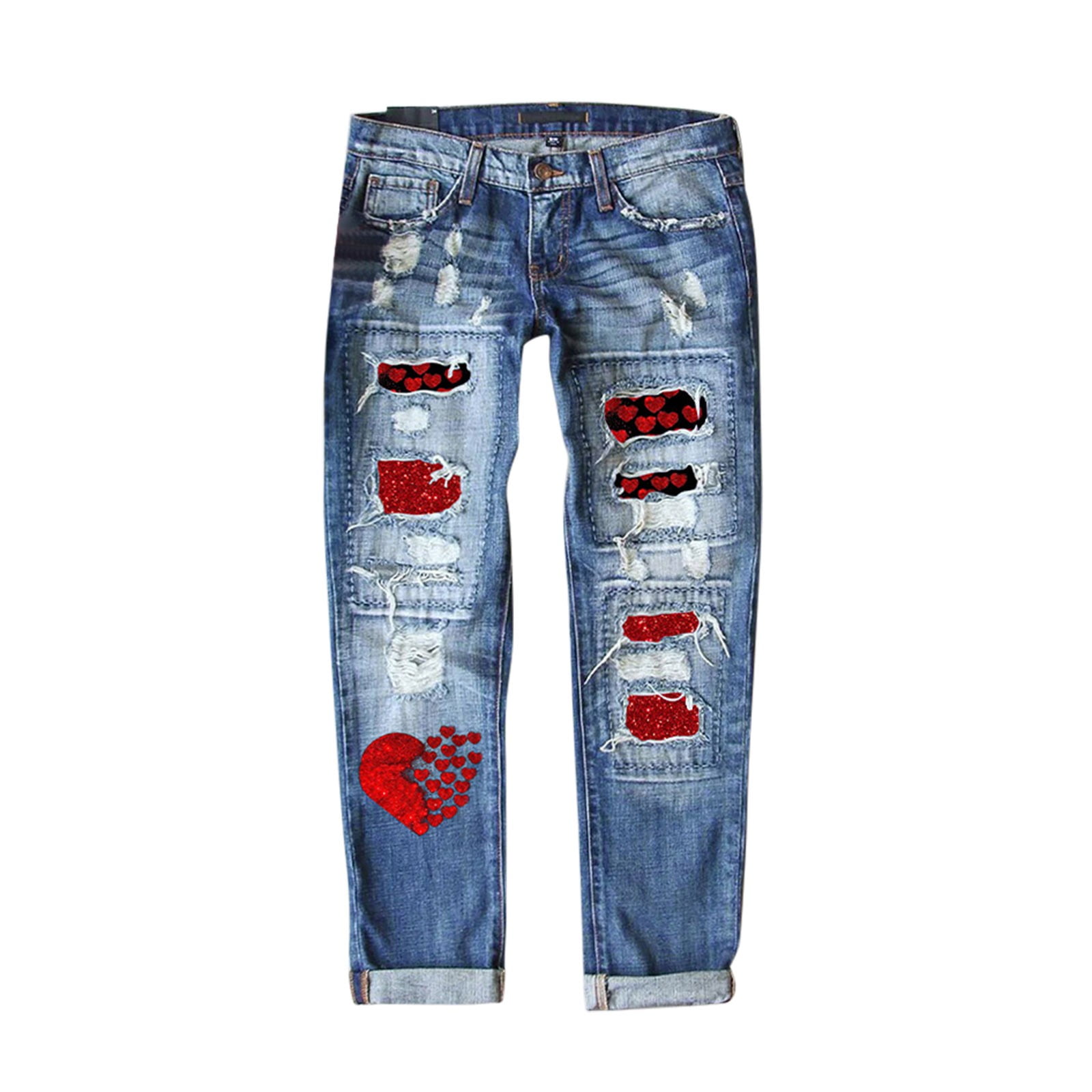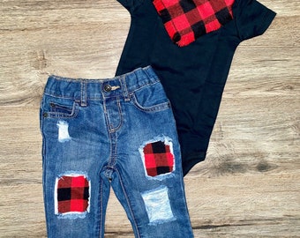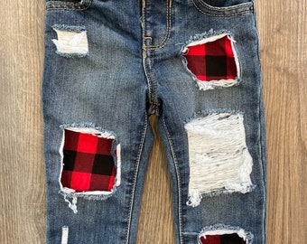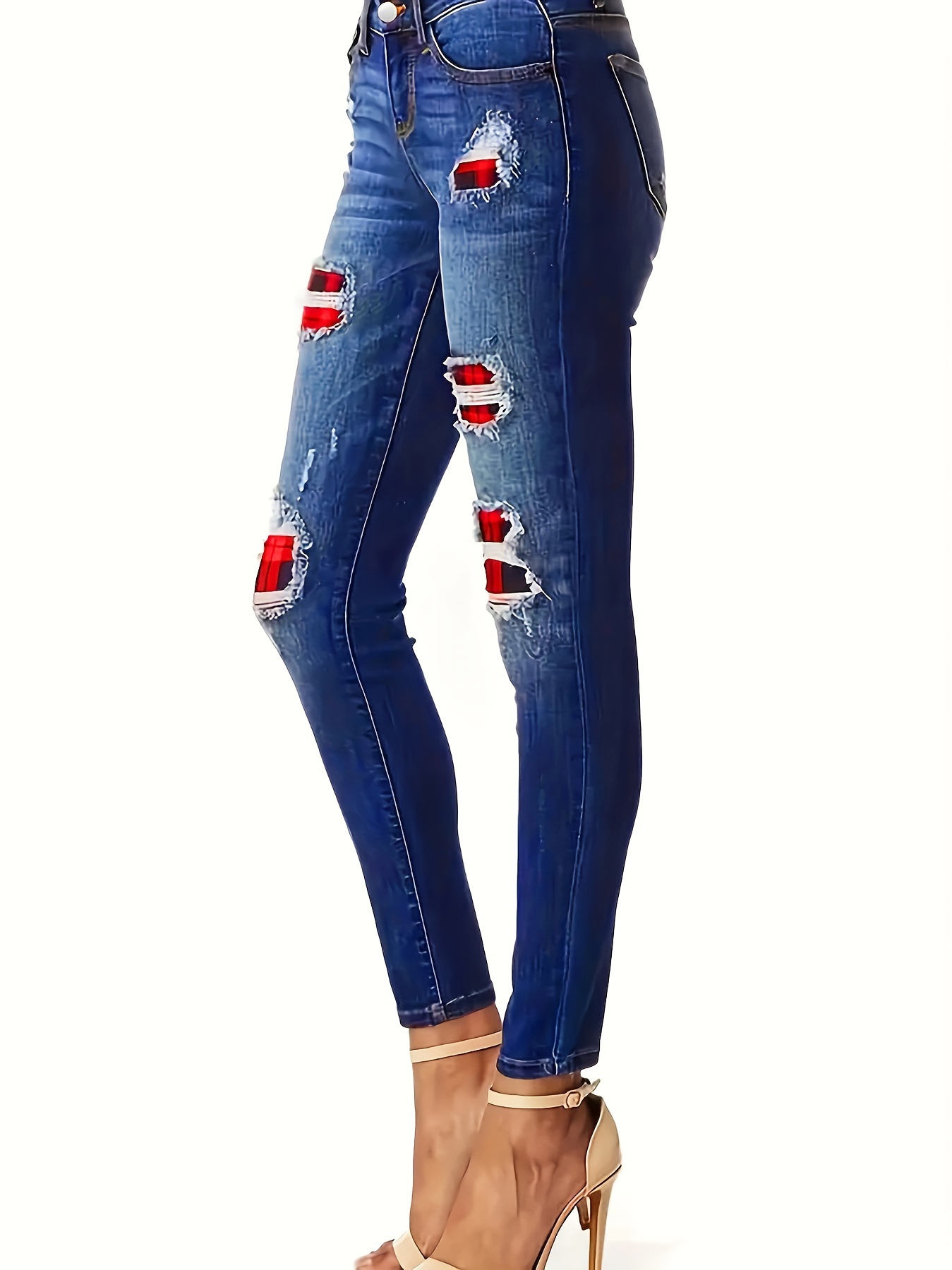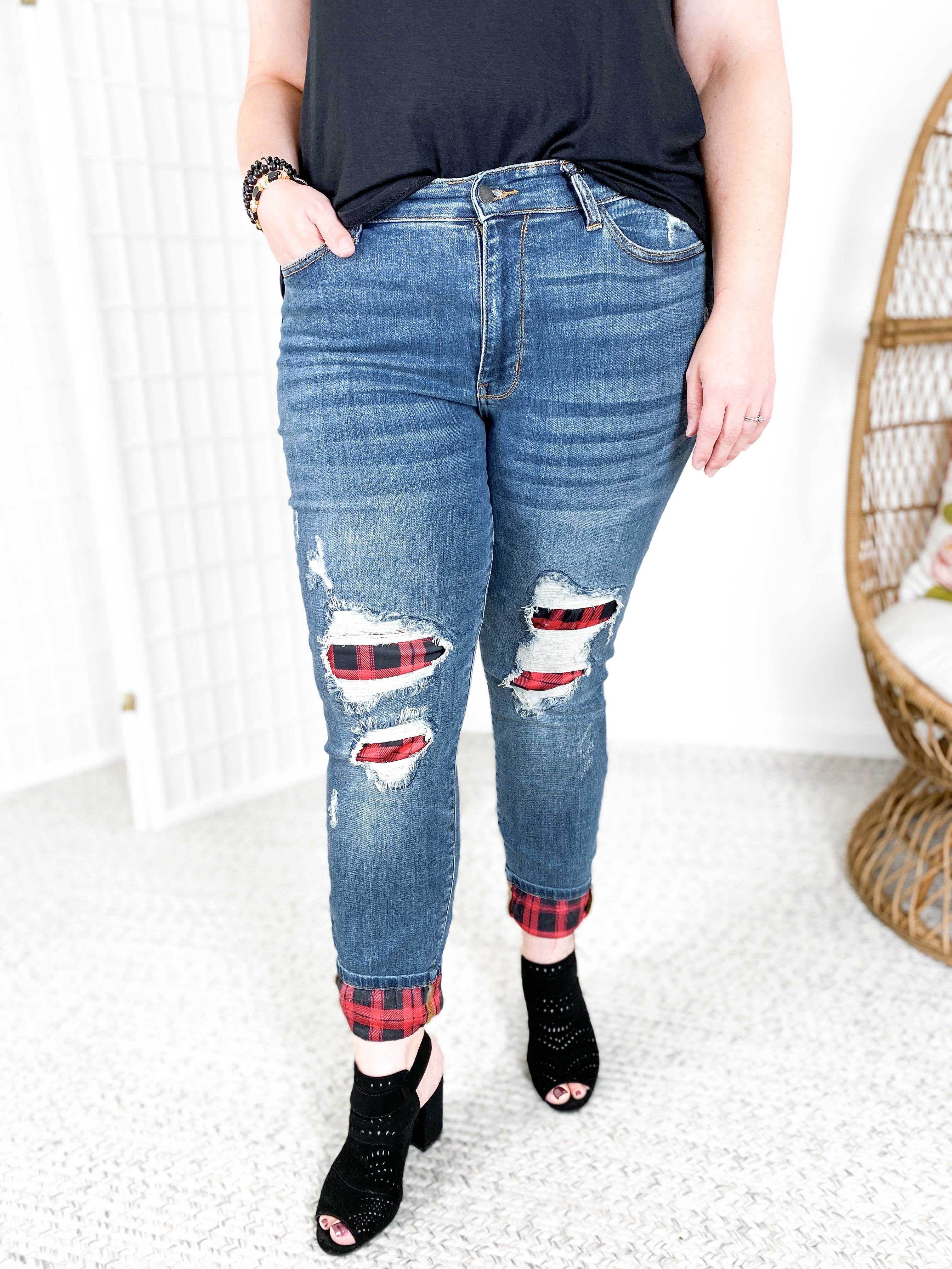 buffalo plaid patch jeans plus size