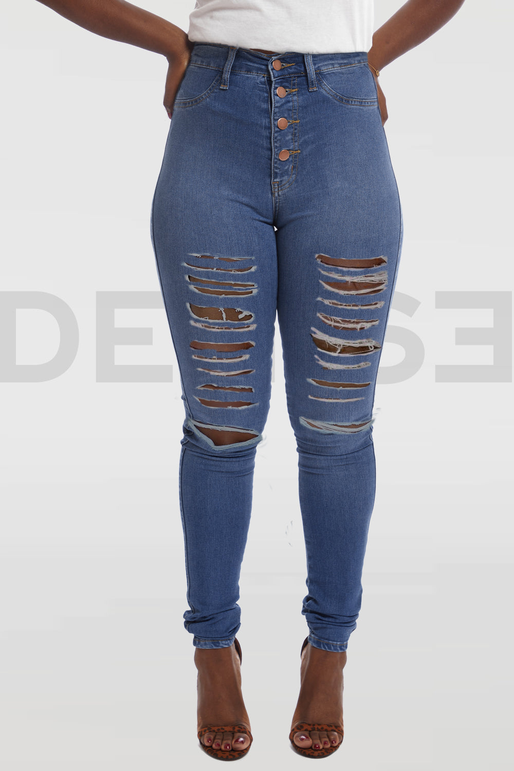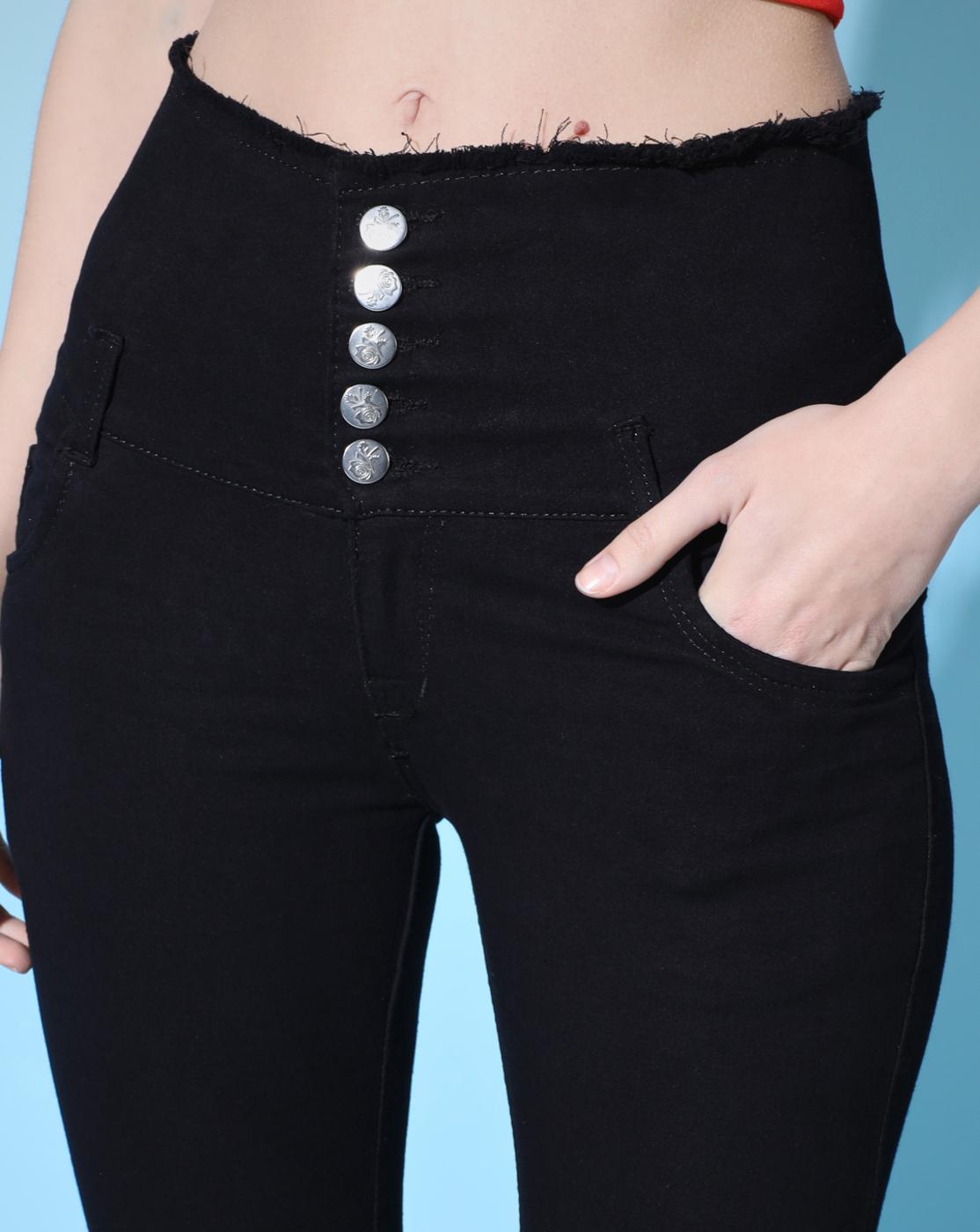 button front high waisted jeans