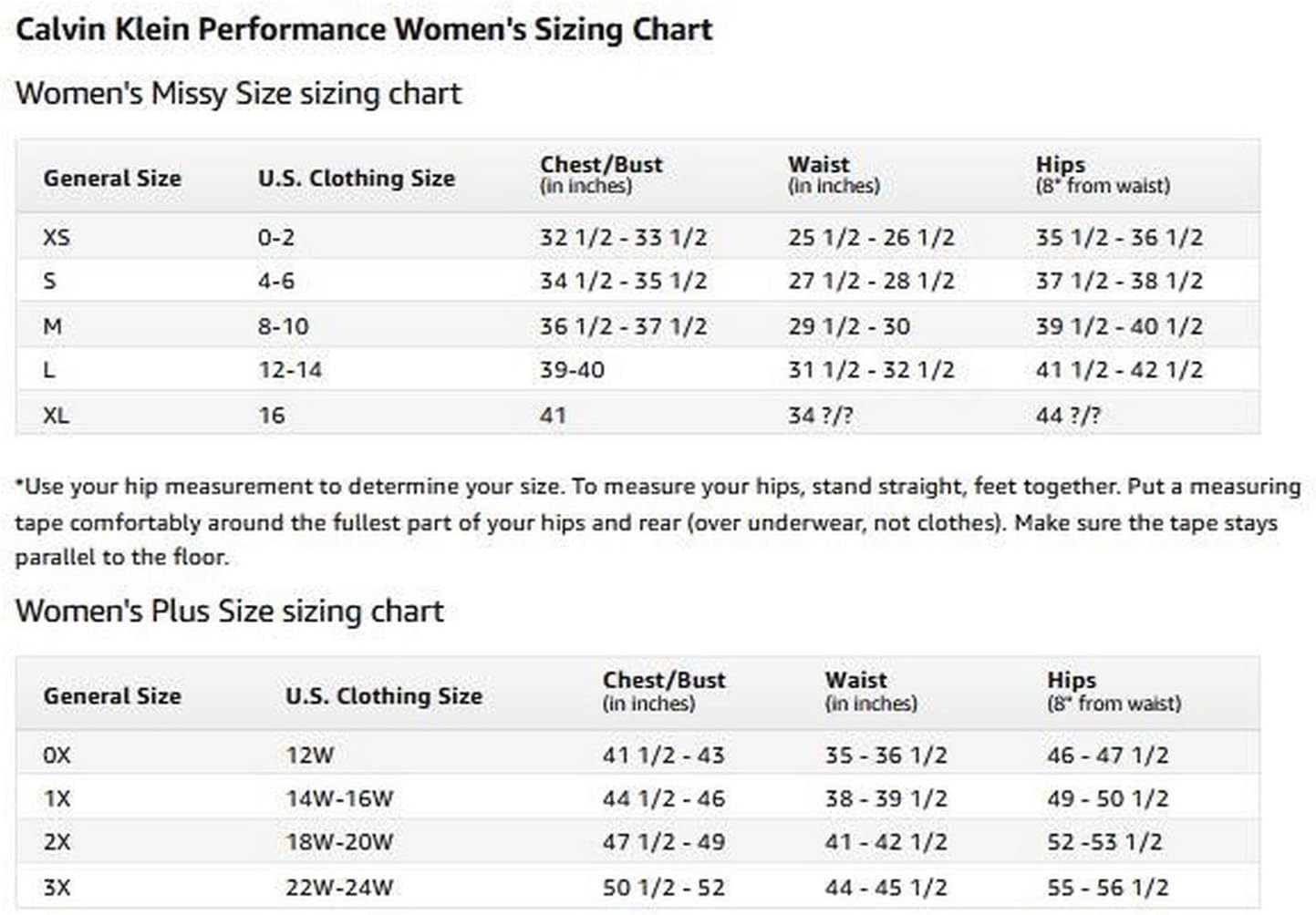 calvin klein jean size chart