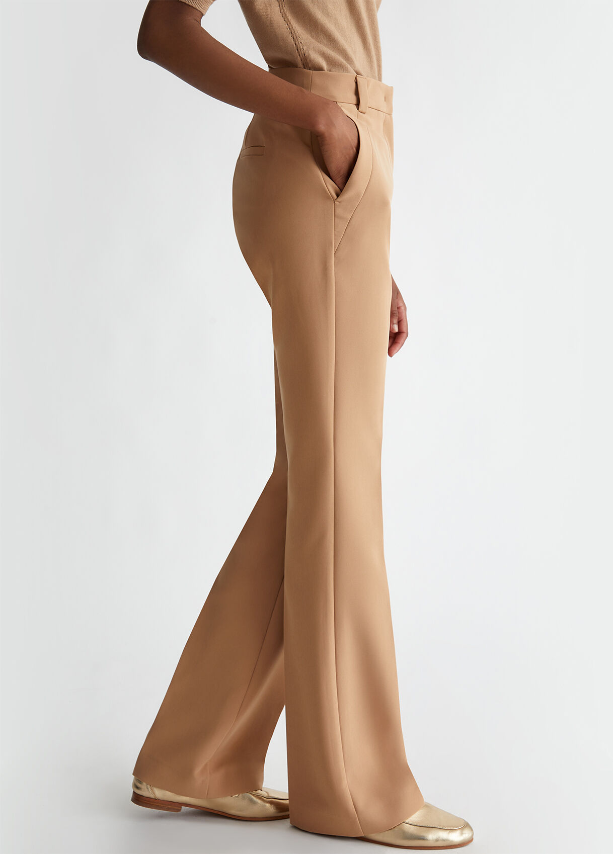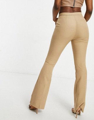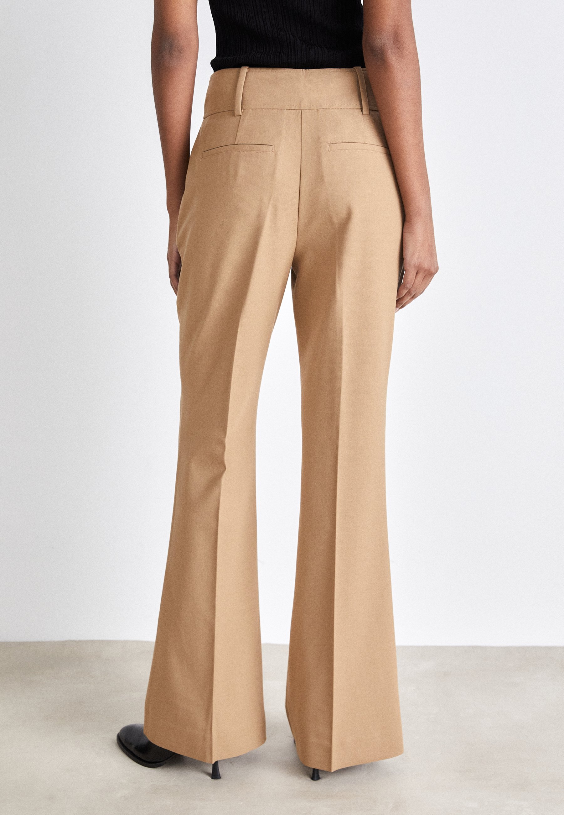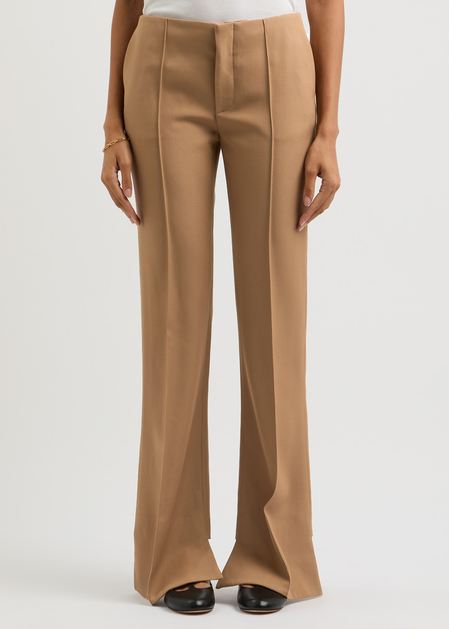 camel flared trousers