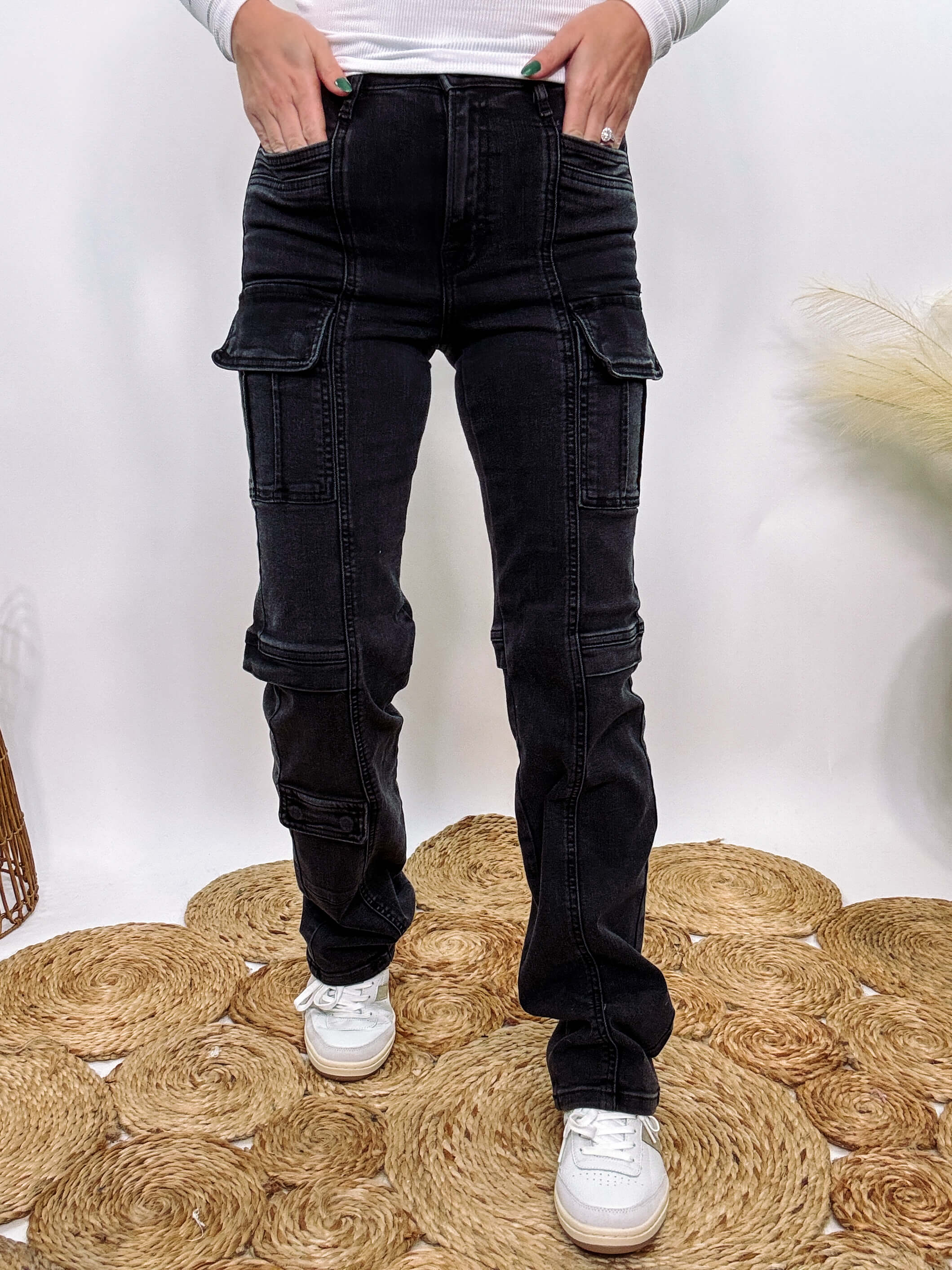 cargo straight leg jeans