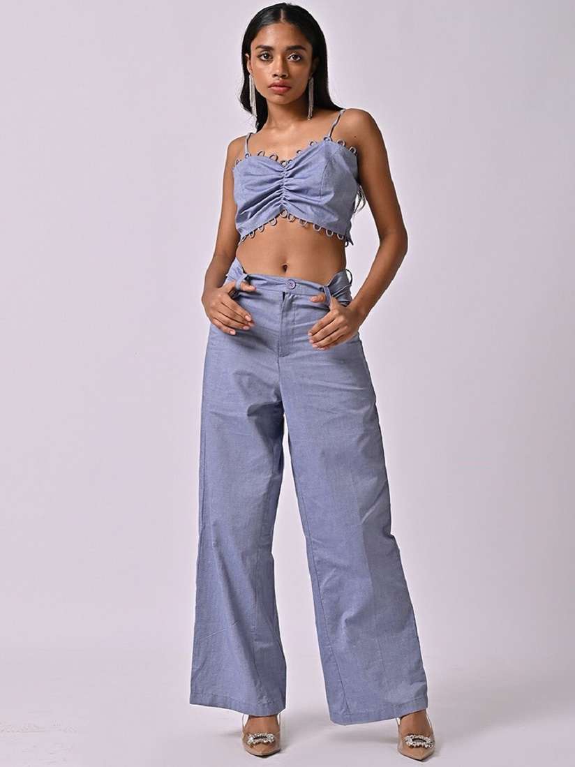 chambray cropped trousers