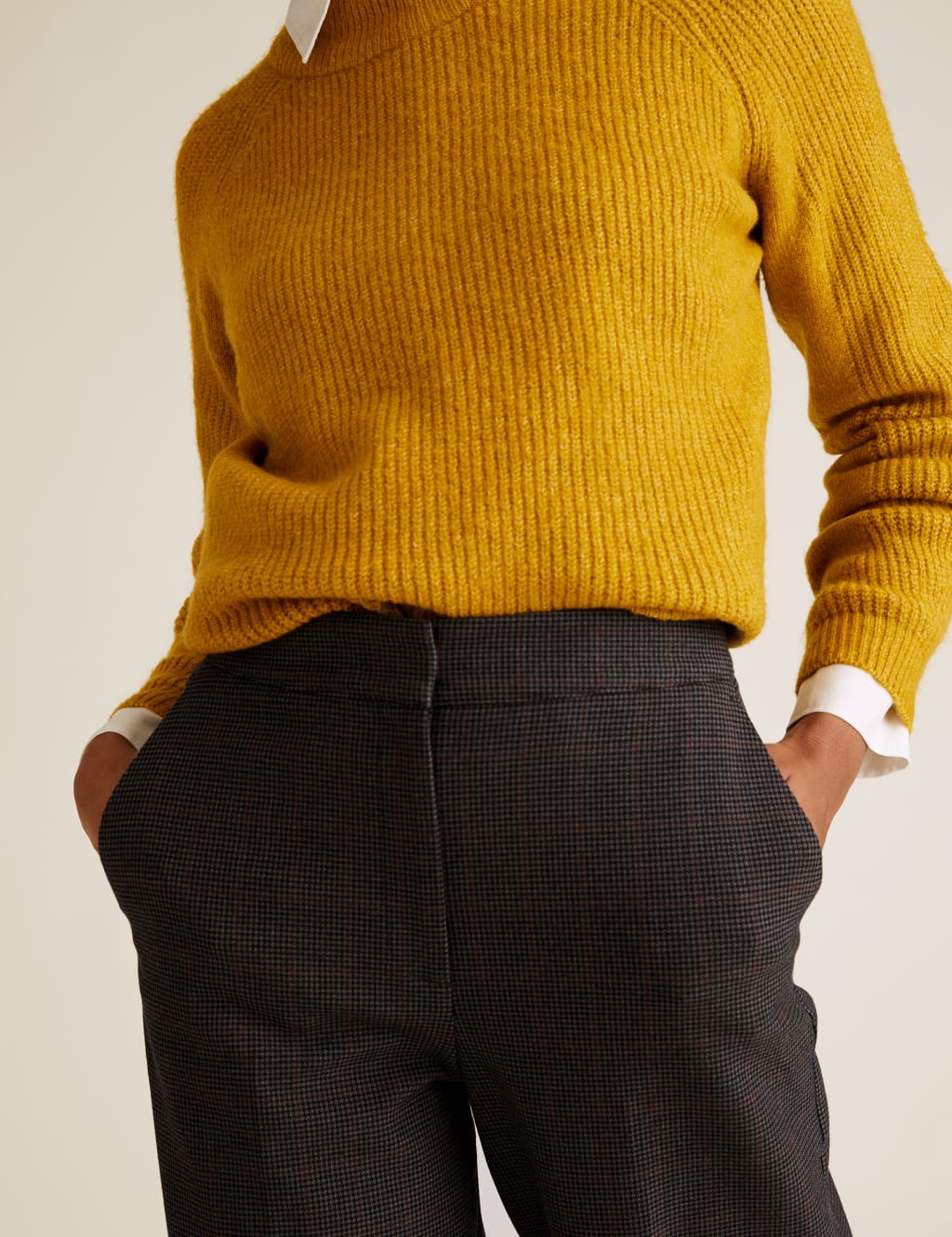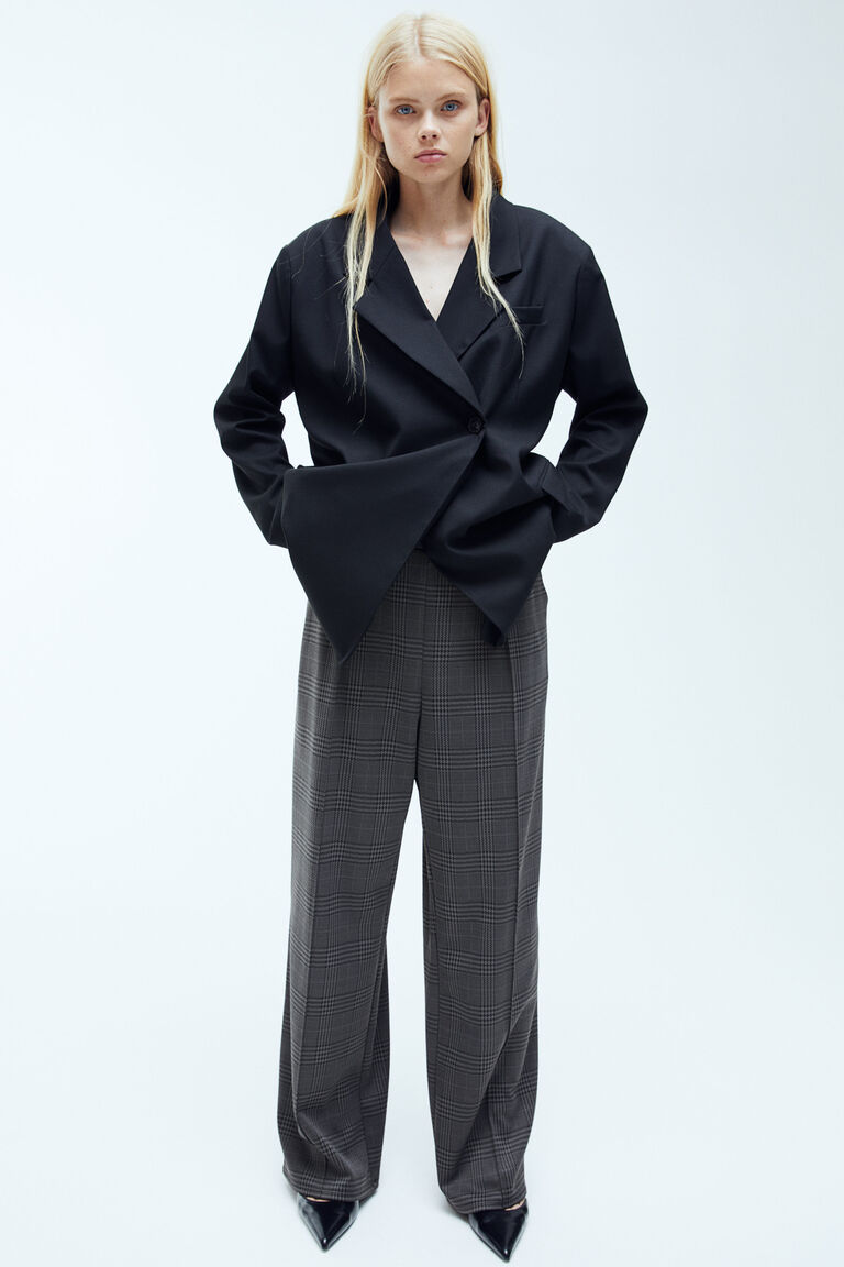 checked high waisted trousers