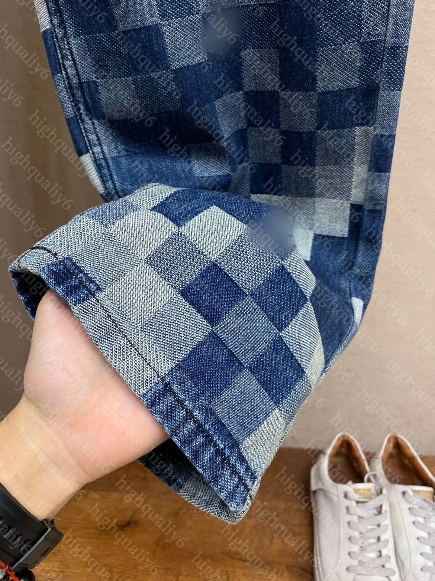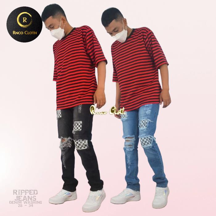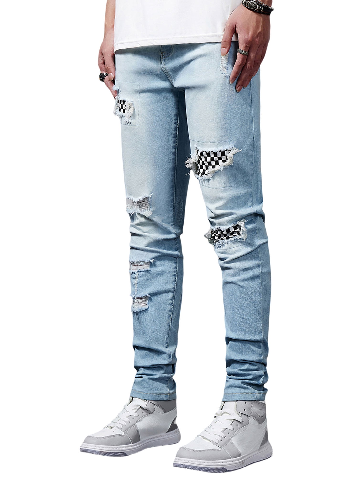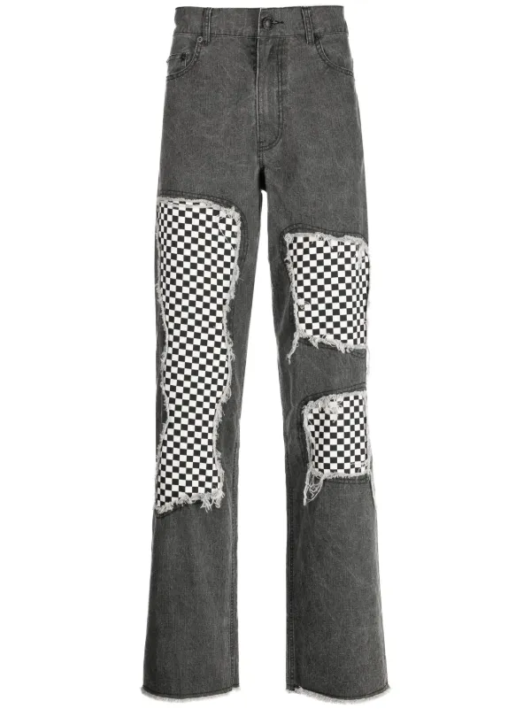 checkerboard ripped jeans