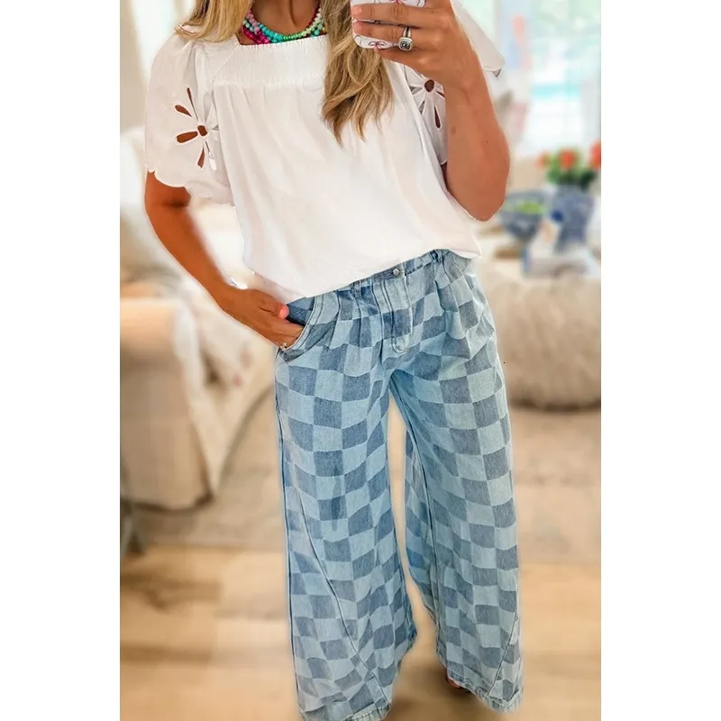 checkered denim pants
