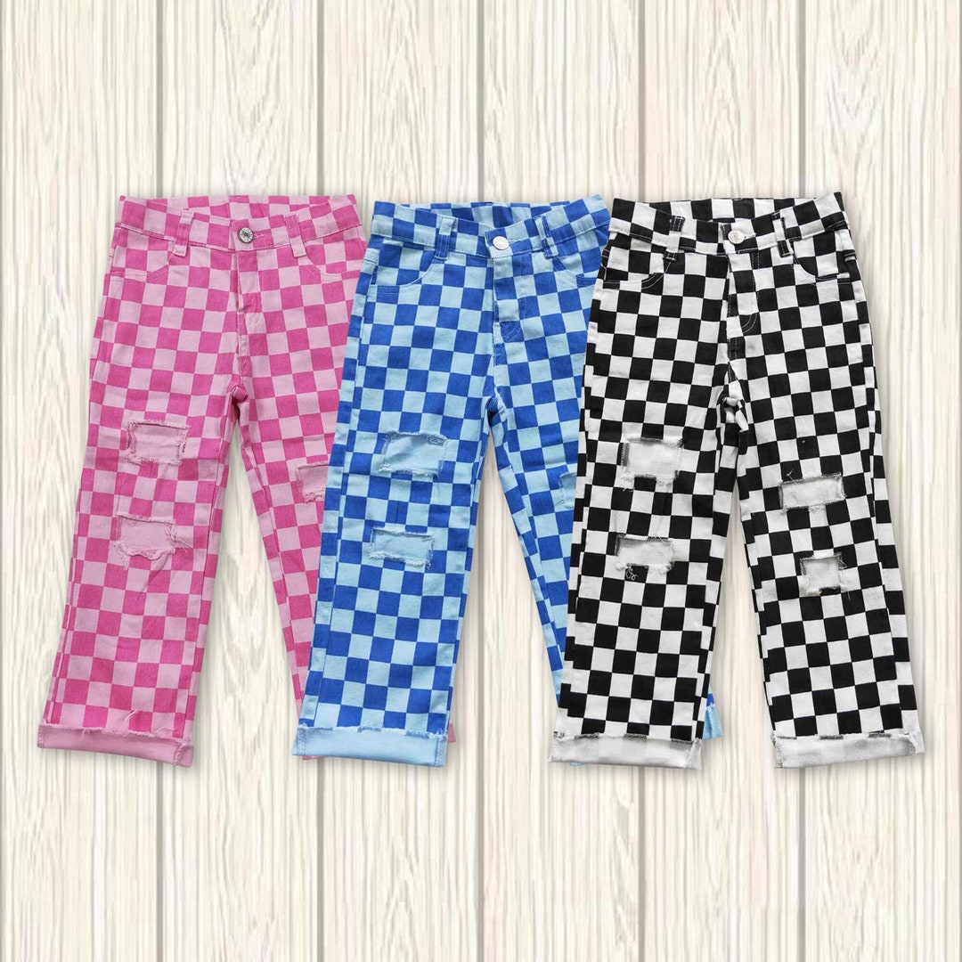 checkered jeans denim