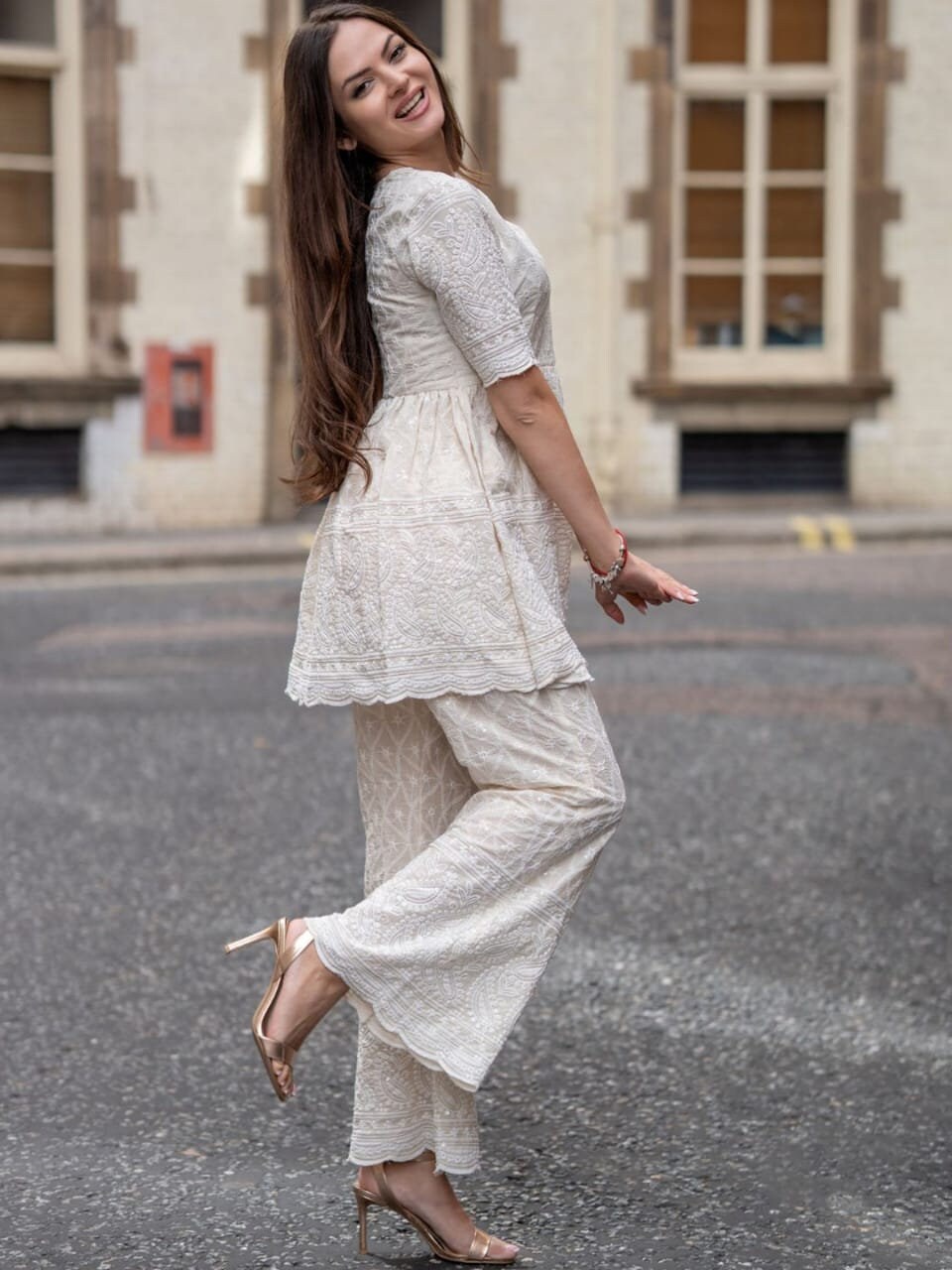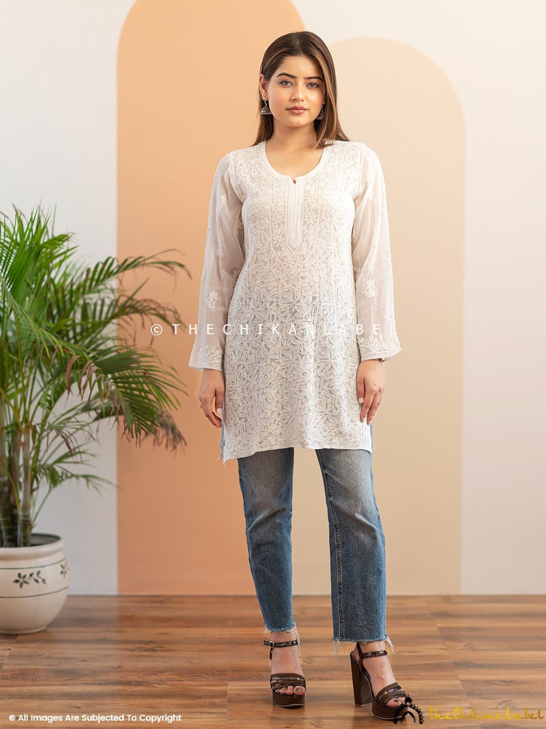 chikankari kurti with jeans