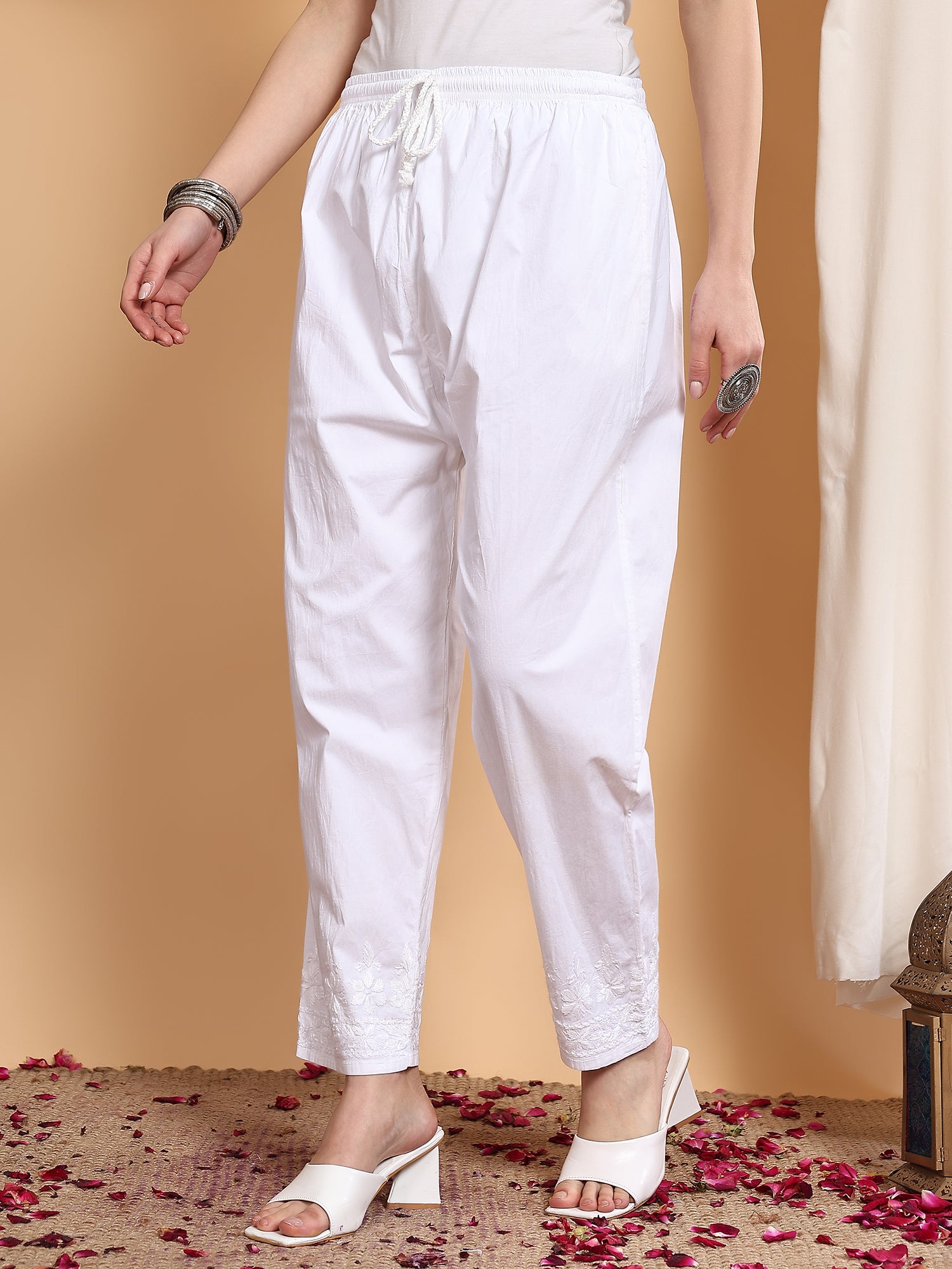 chikankari stretchable pants