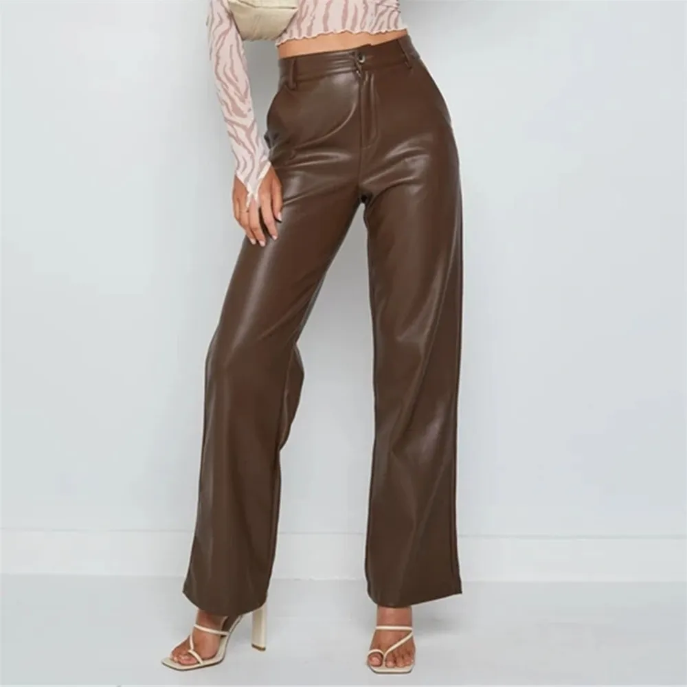 chocolate pu trousers