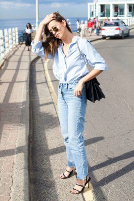 cinched mom jeans