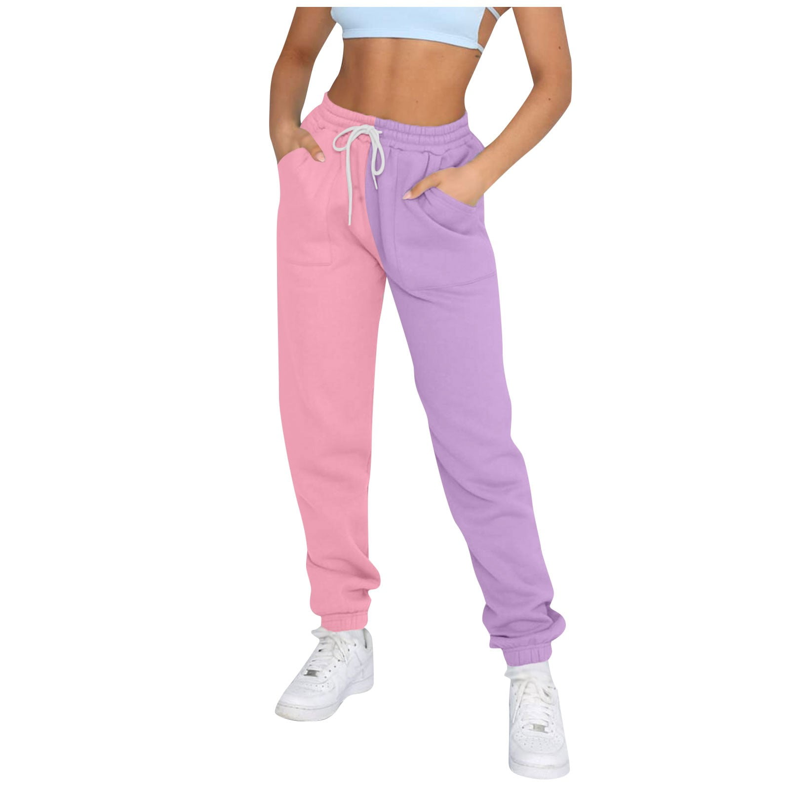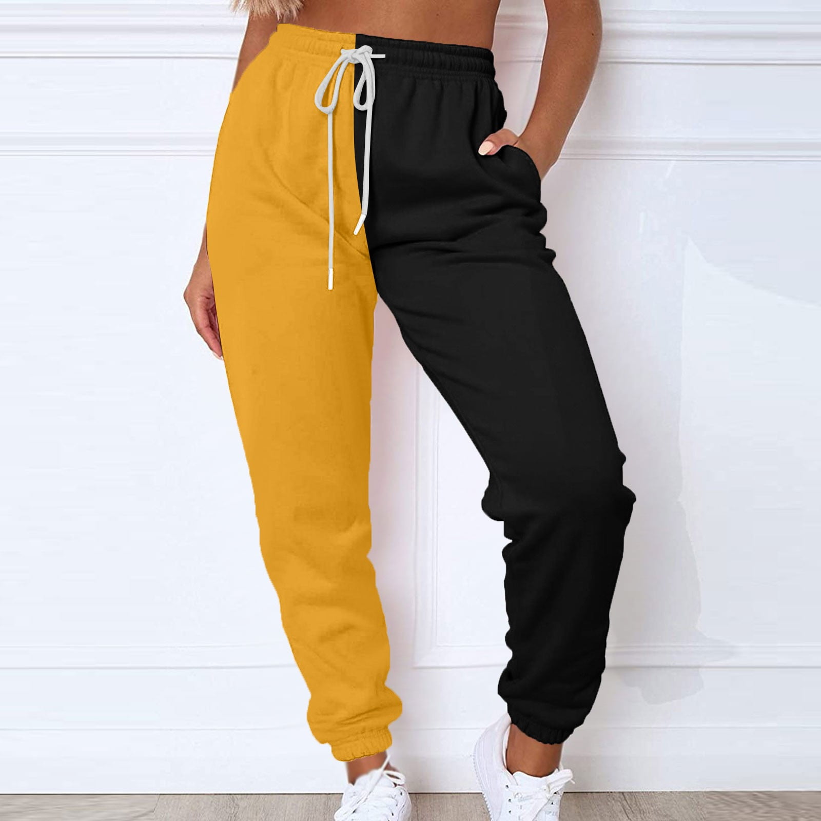 color block elastic joggers