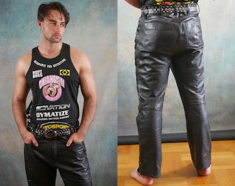 color block leather pants
