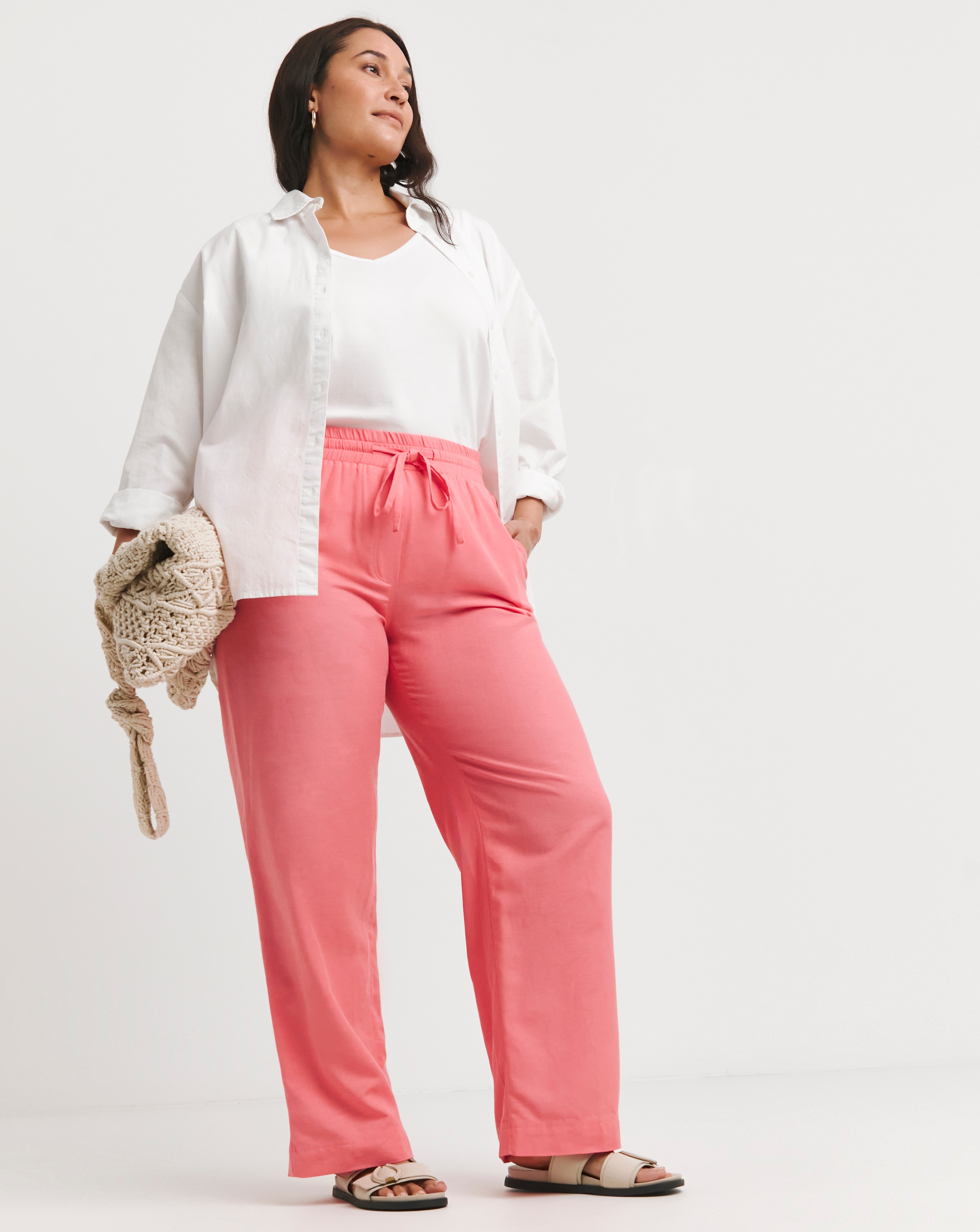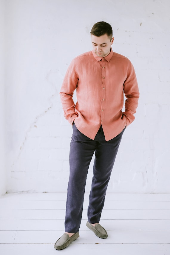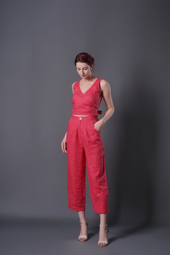 coral linen pants
