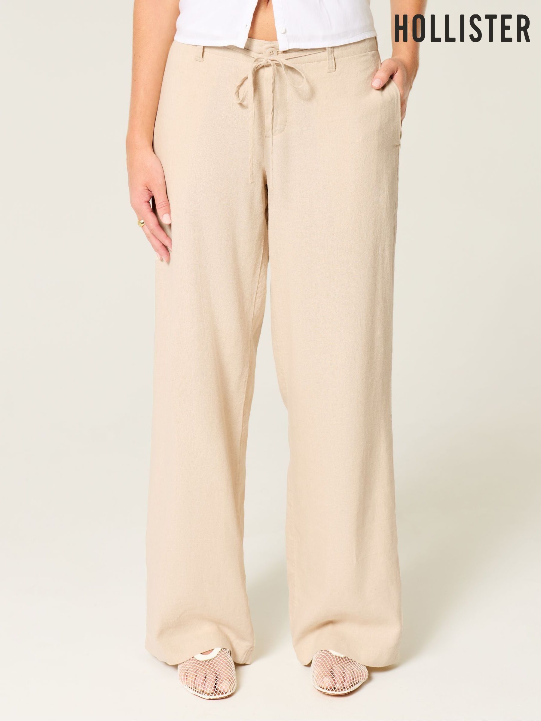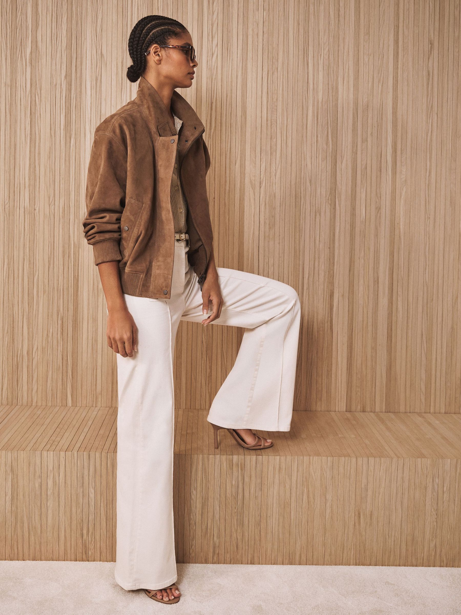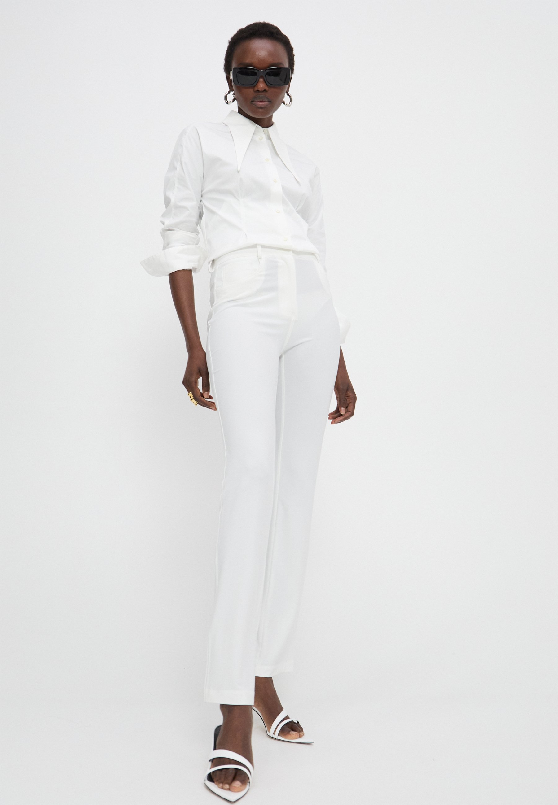 cream bootleg trousers