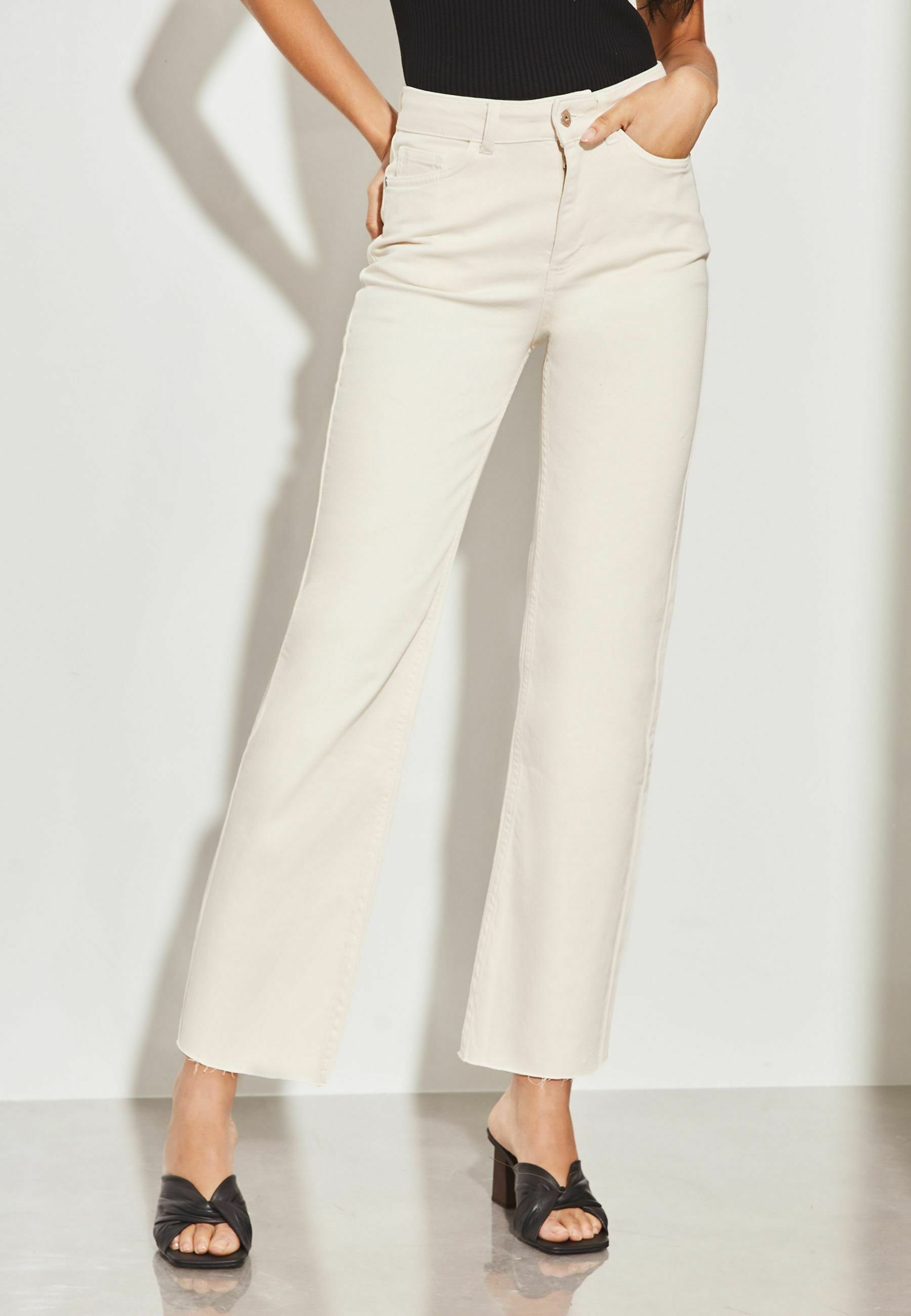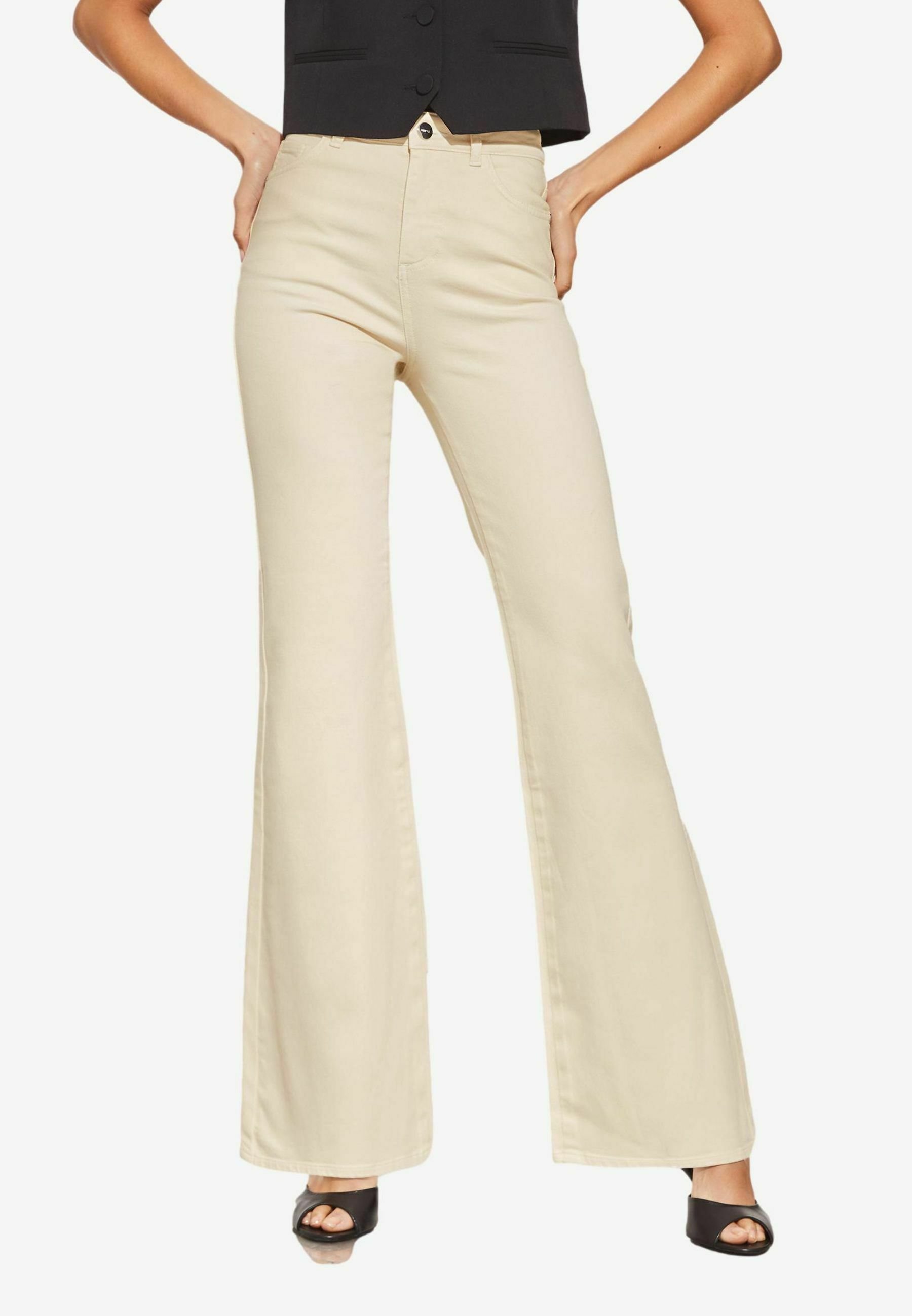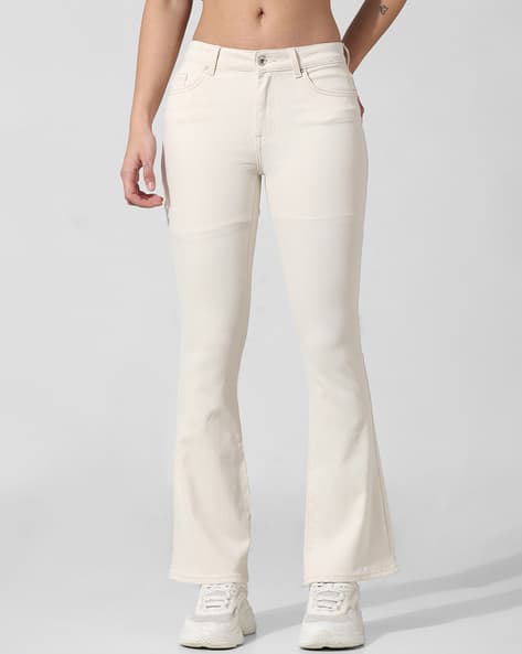 cream flared jeans
