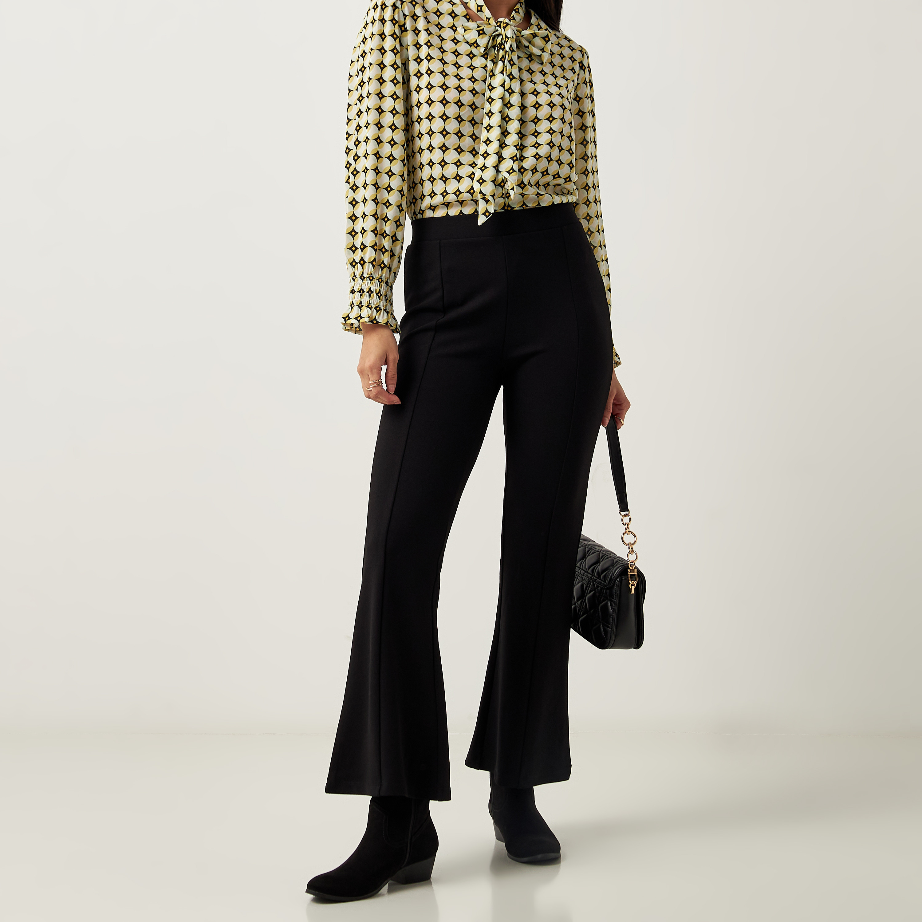 crepe flared trousers