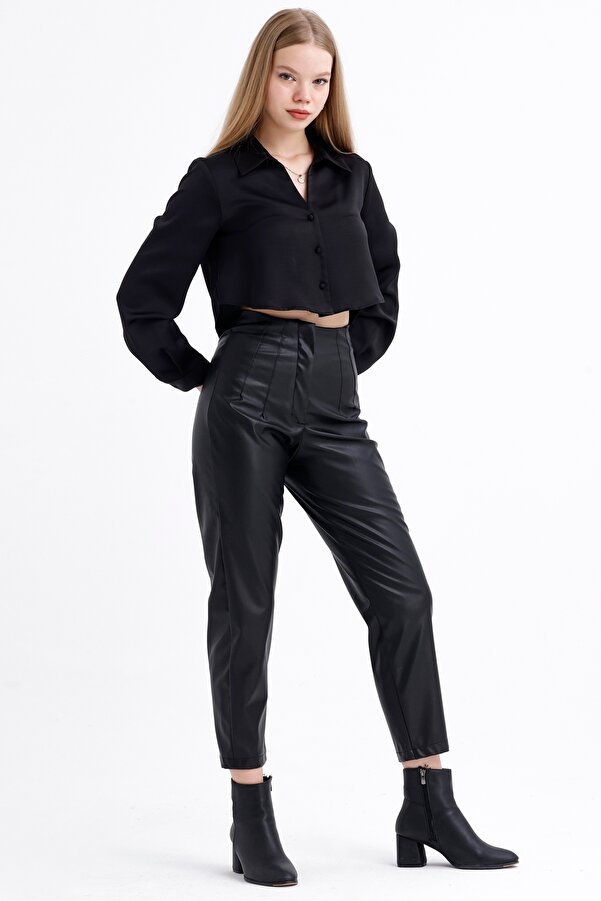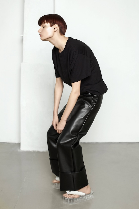 cuffed leather trousers