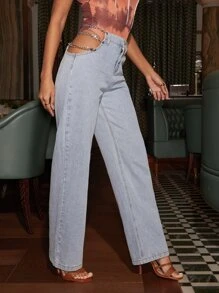 cut out chain jeans