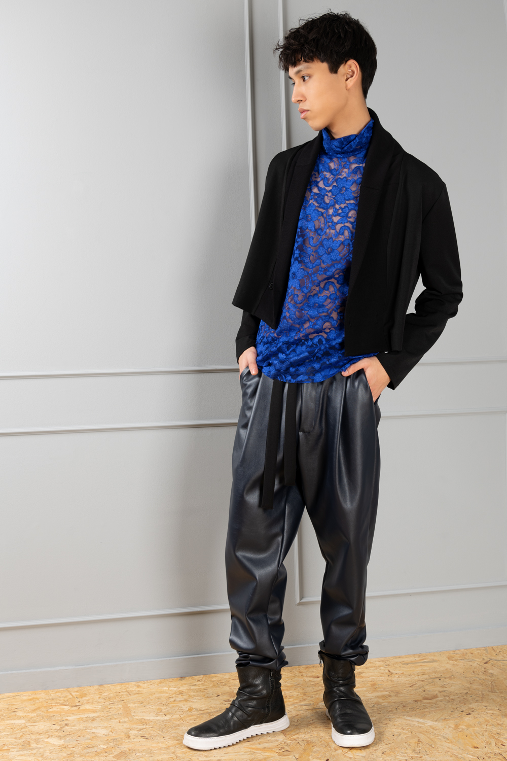 dark blue leather pants