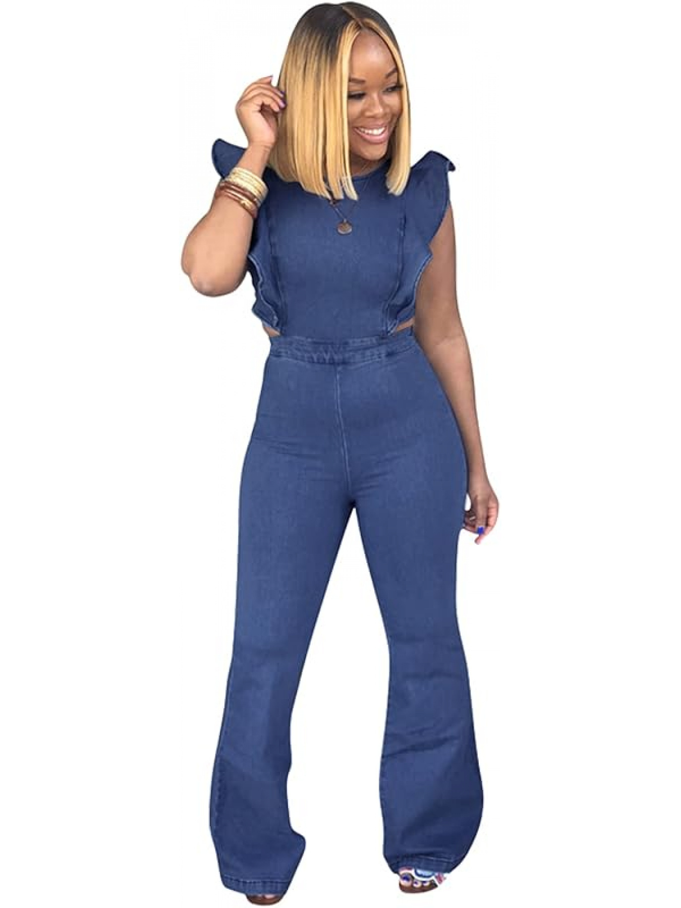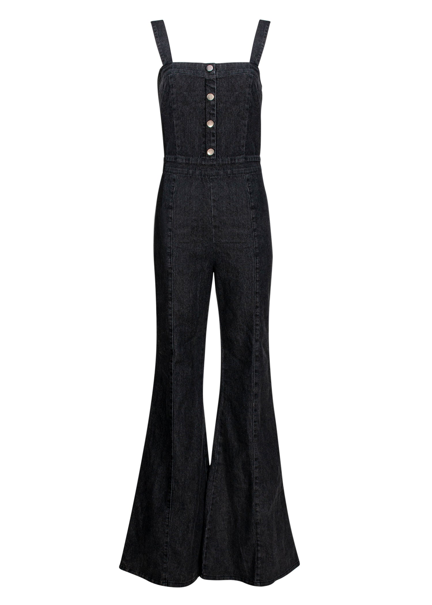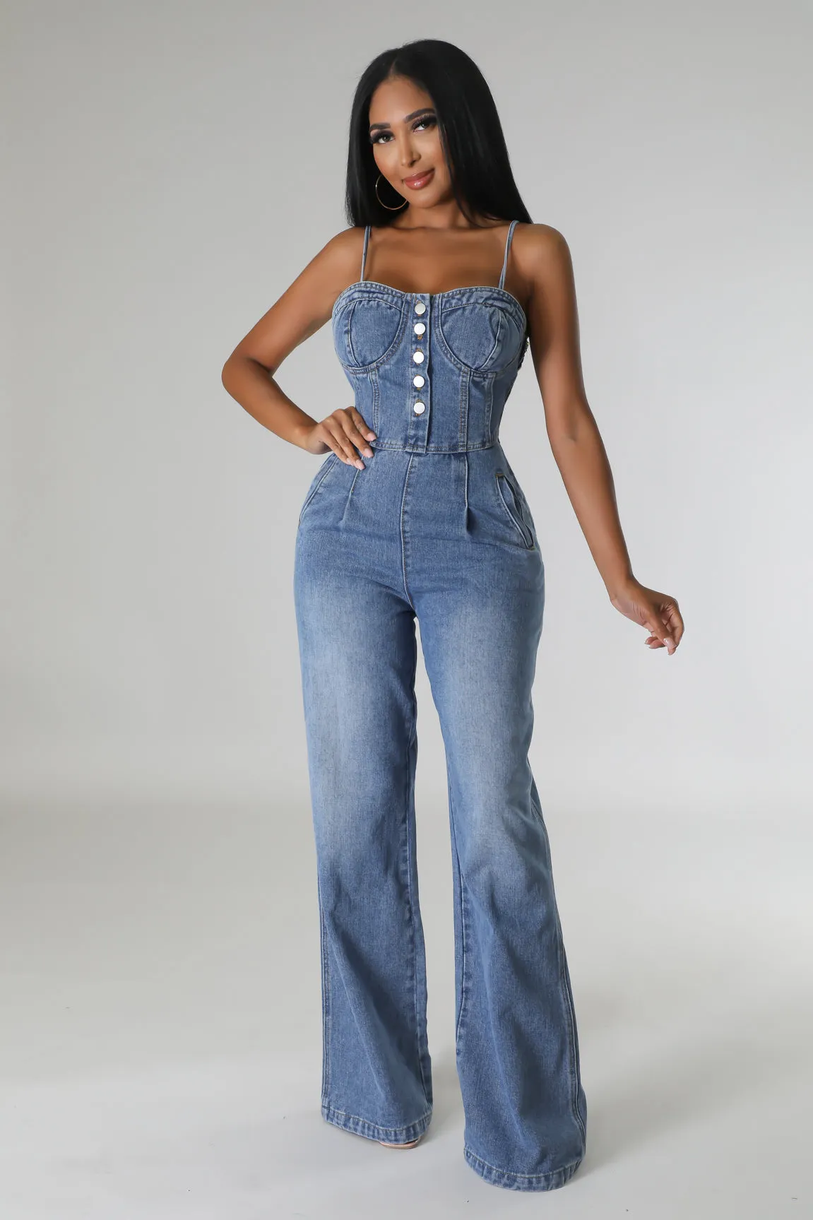 denim bell bottom jumpsuit