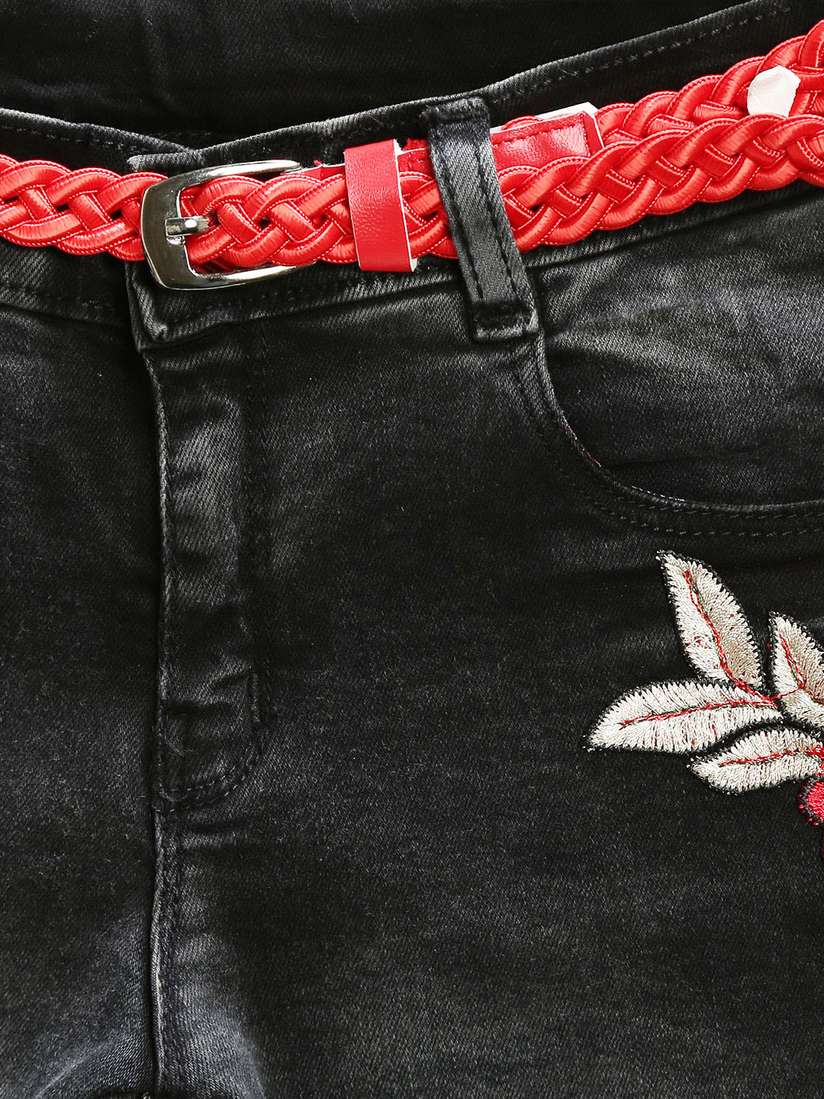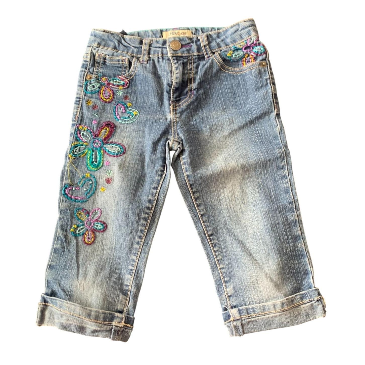 denim capris with embroidery