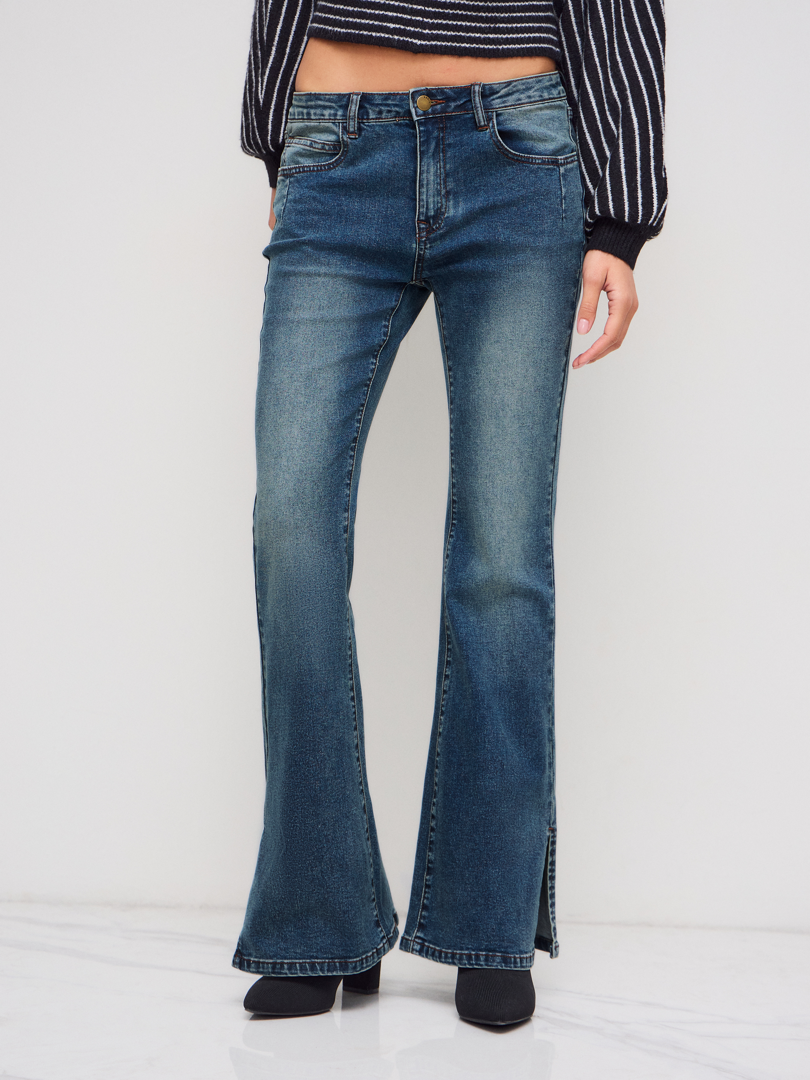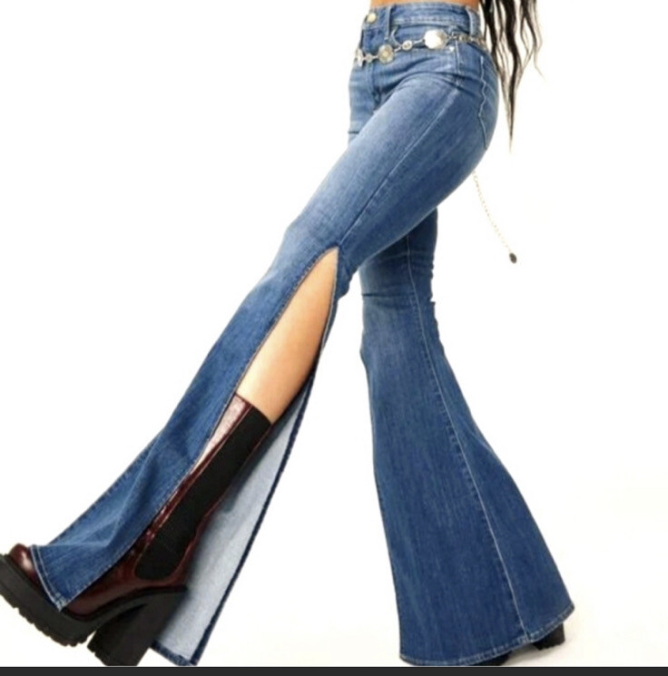 denim flared jeans split