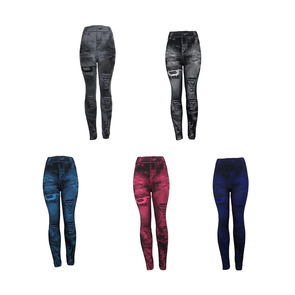 denim ripped leggings