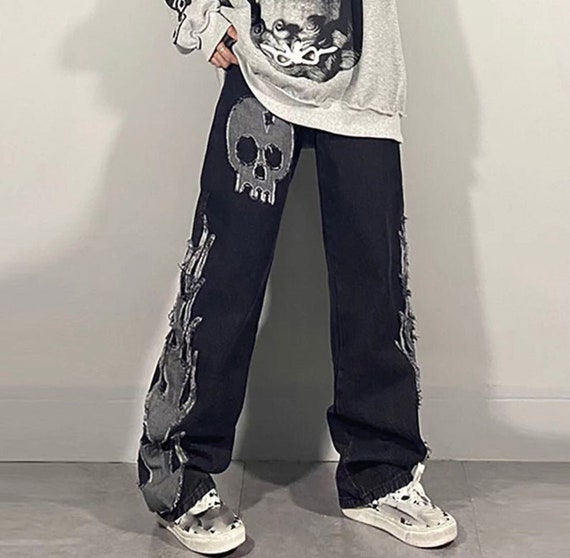 denim skeleton pants