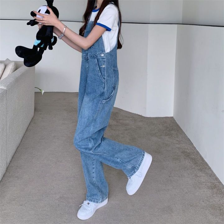 denim suspender pants