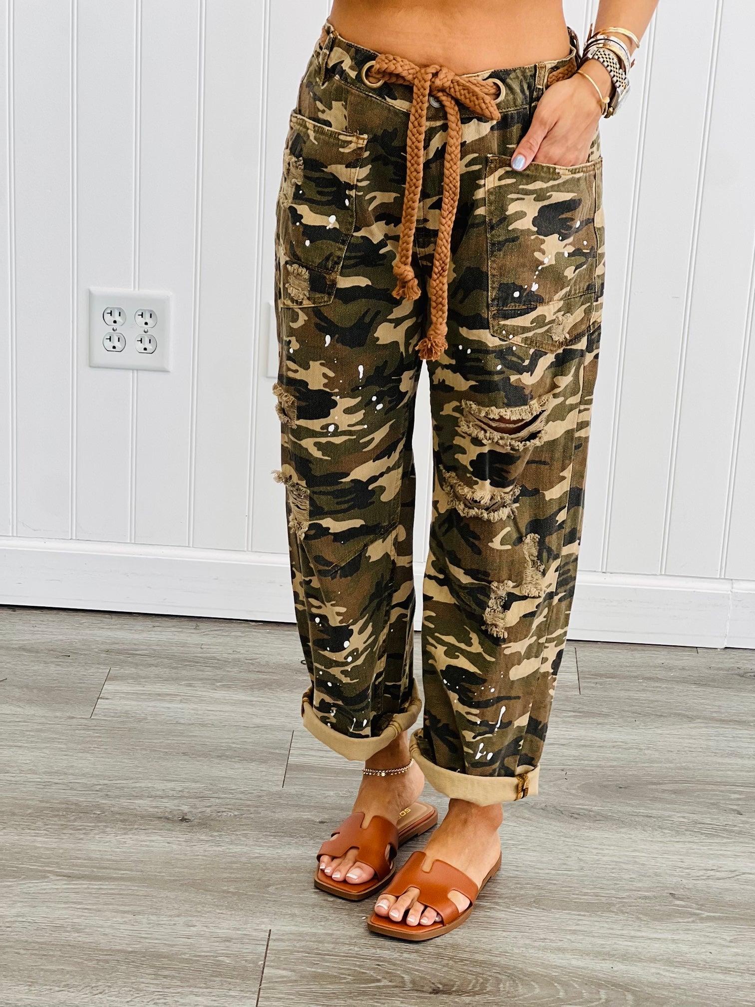 distressed camo pants