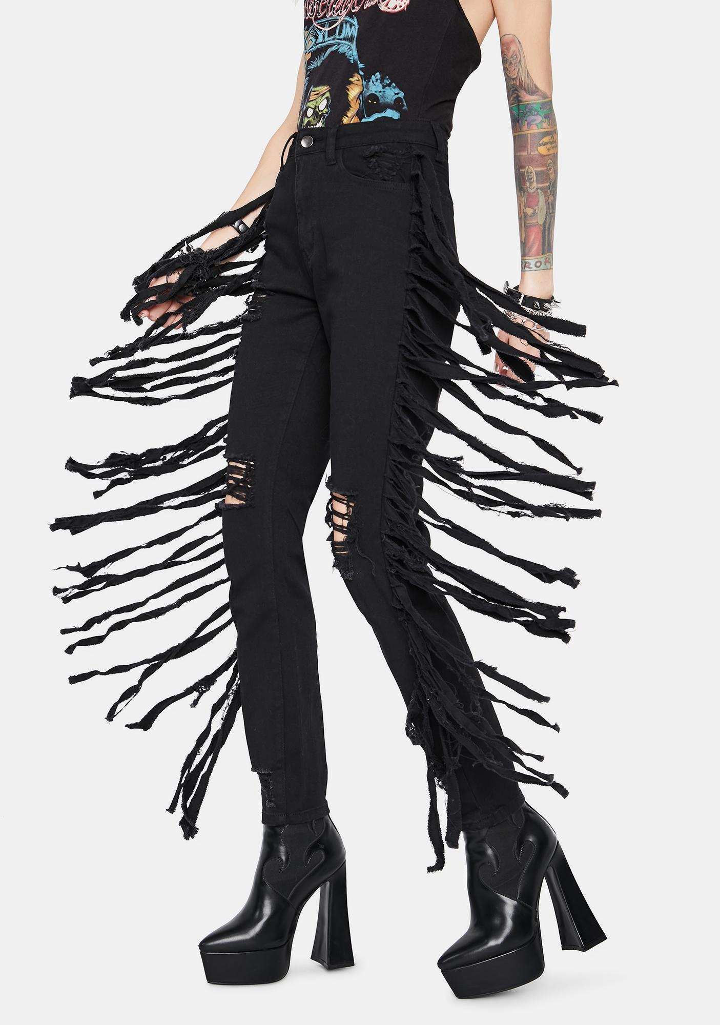 distressed fringe jeans