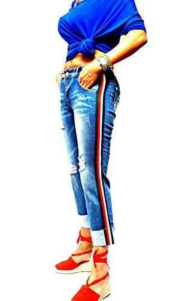 distressed jeans with side stripe