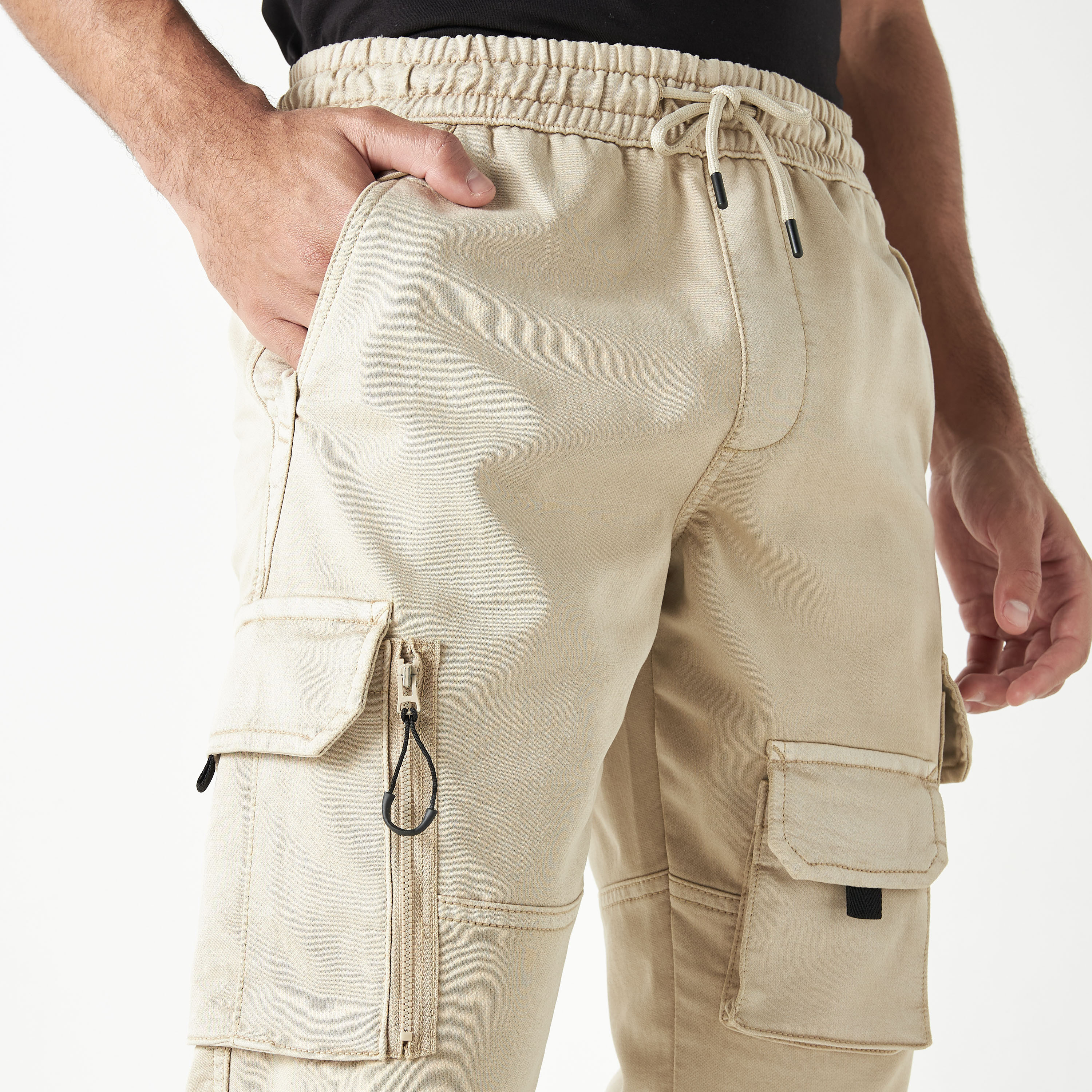 drawstring cargo trousers mens