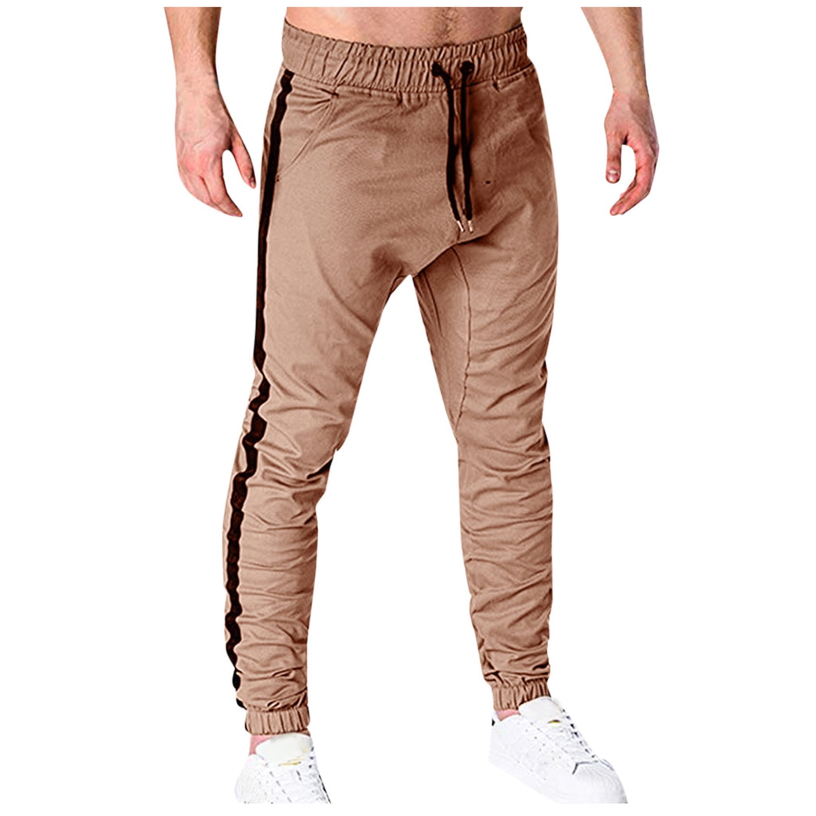 drawstring striped zipper decorated slim pants