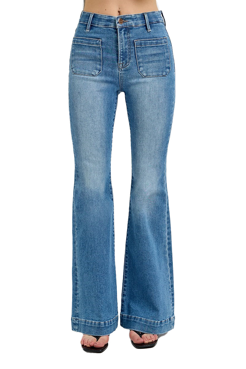 elastic flare jeans