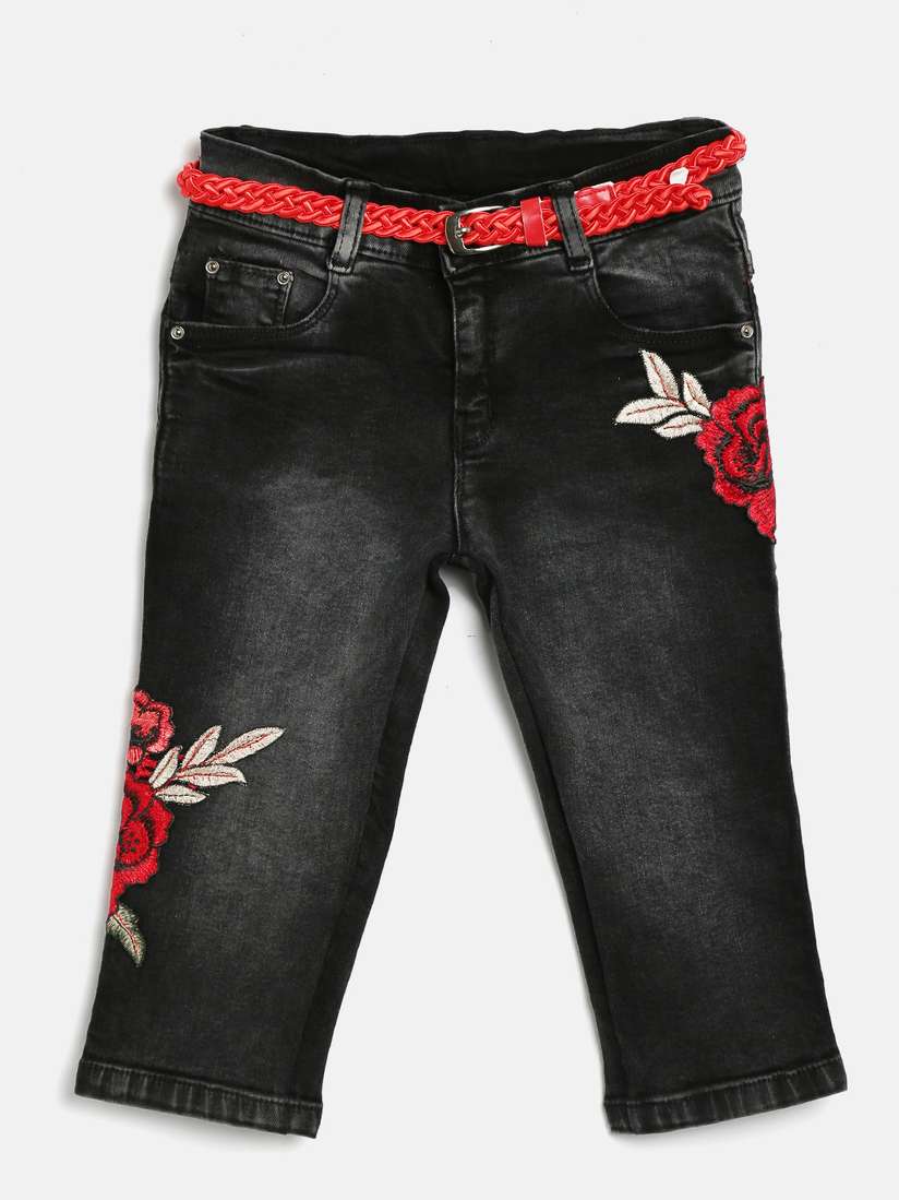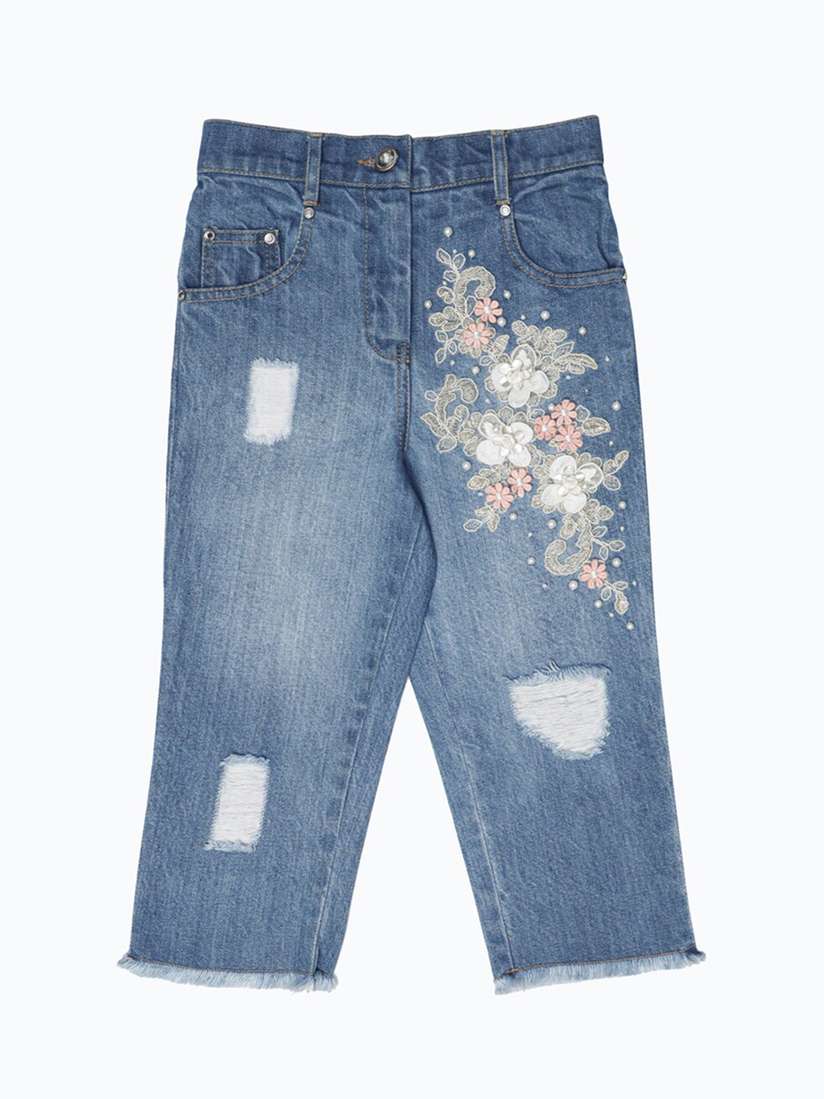 embroidered denim capris