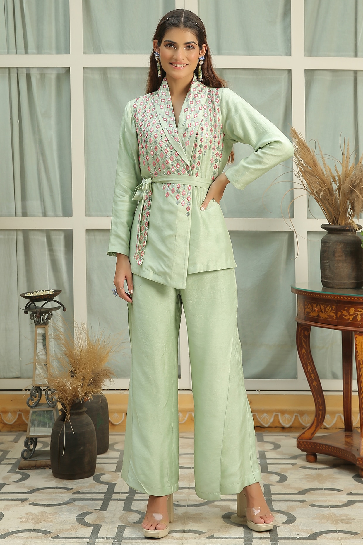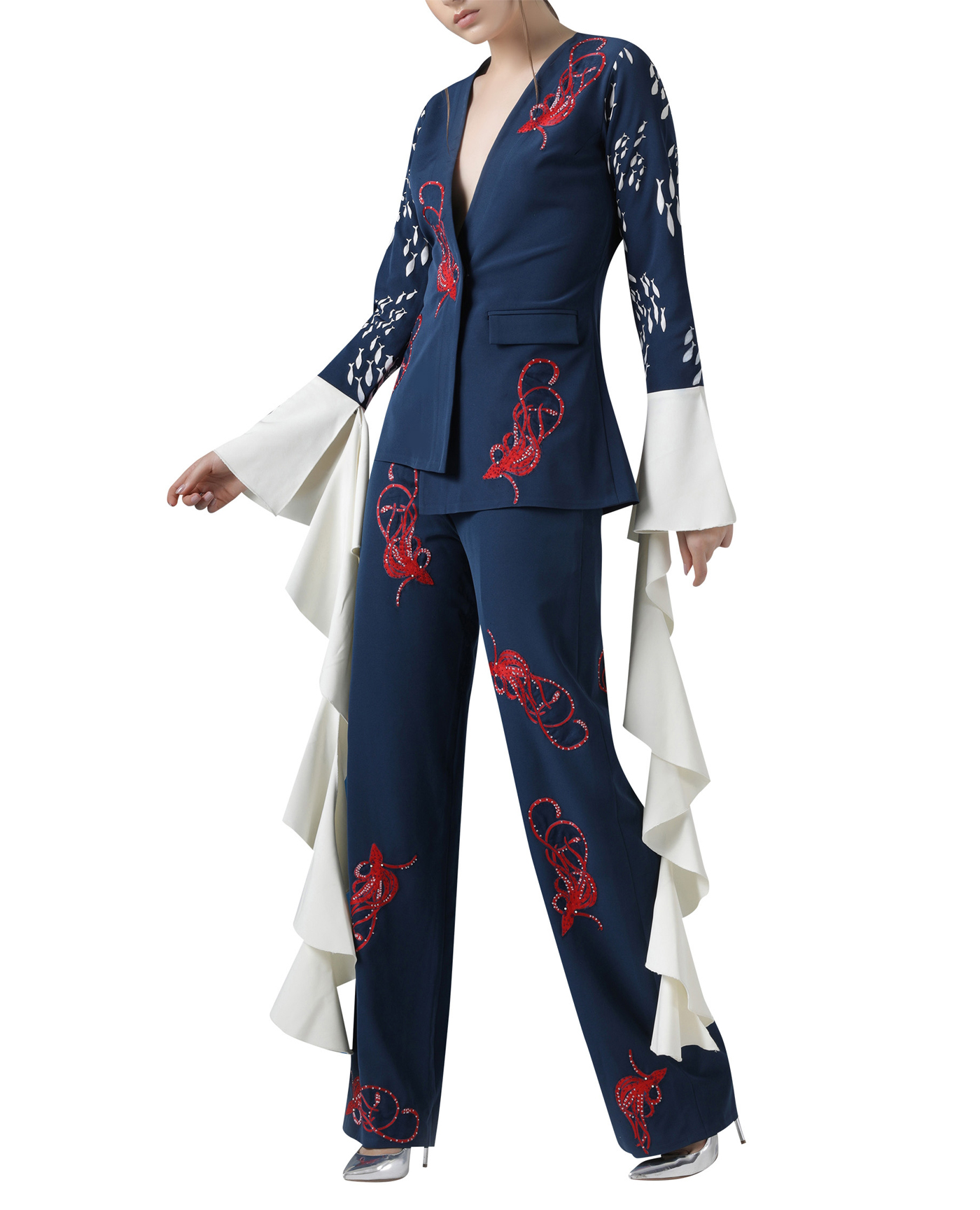 embroidered pant suit