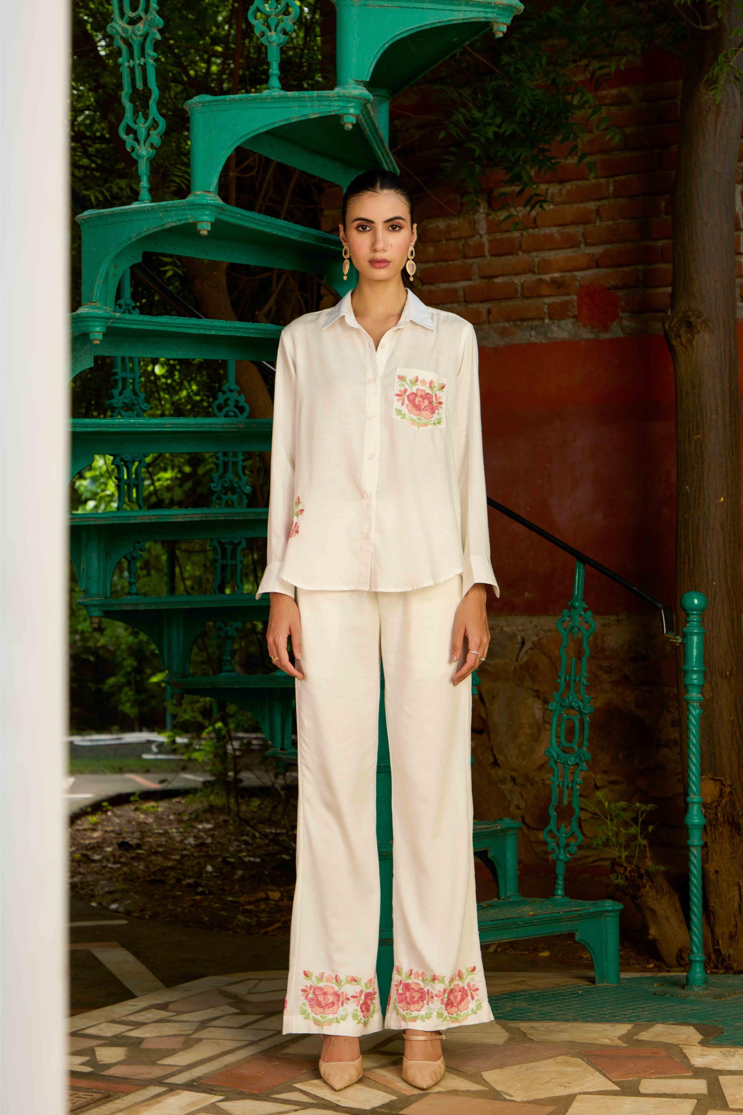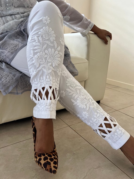 embroidered white pants