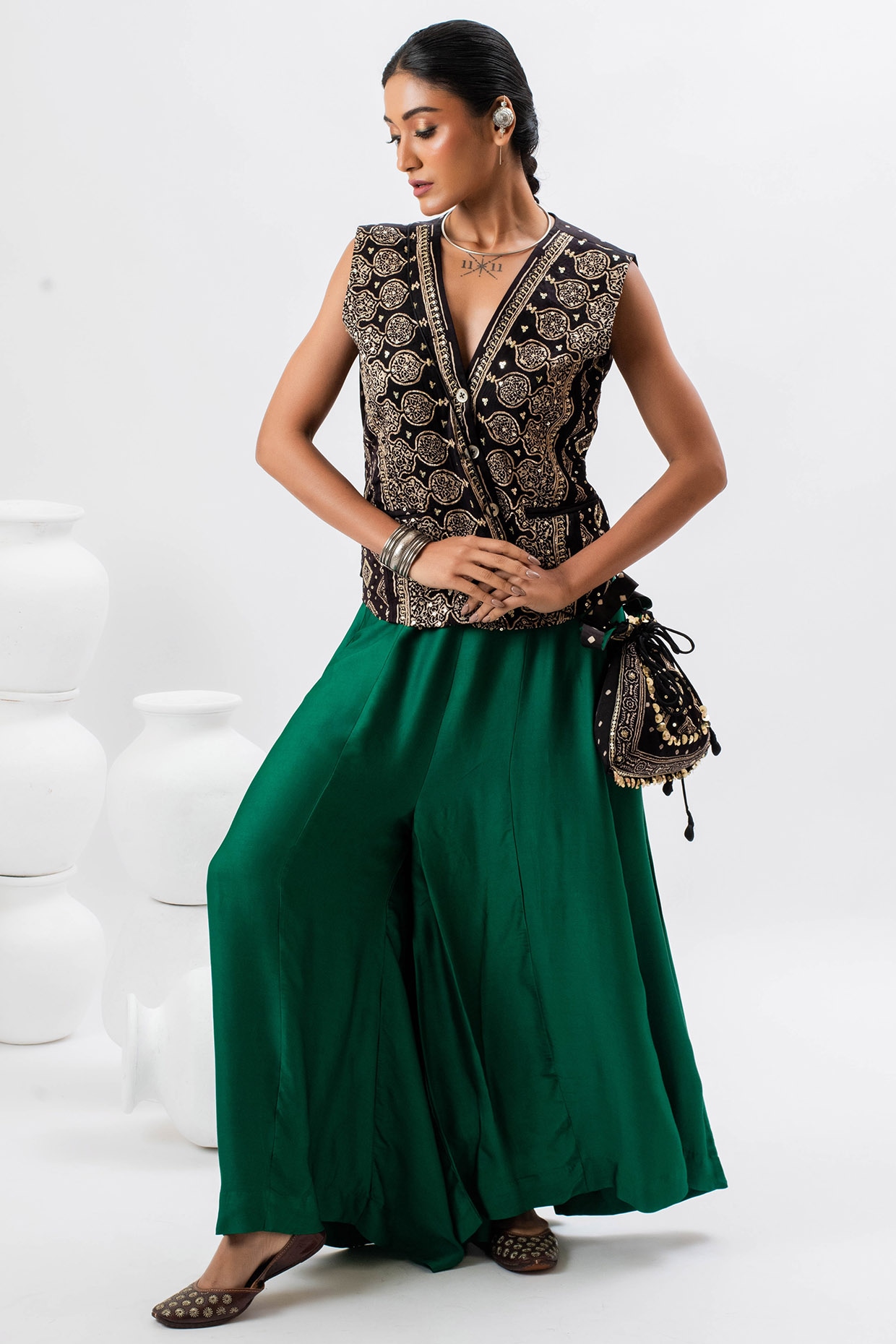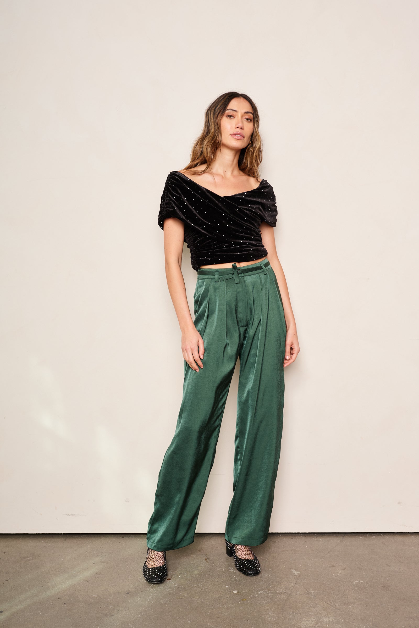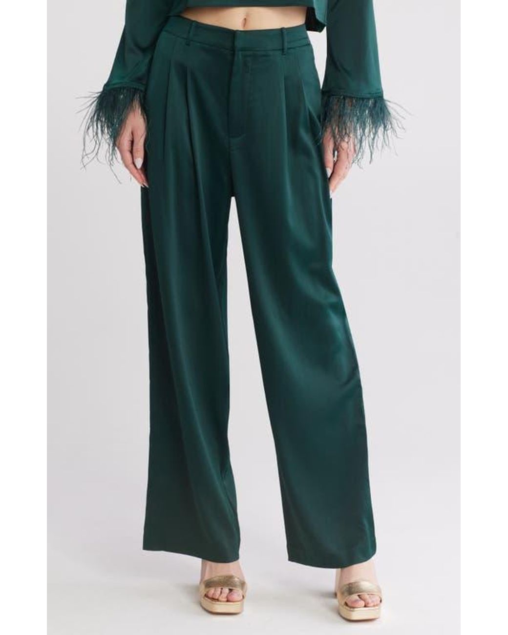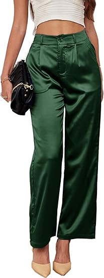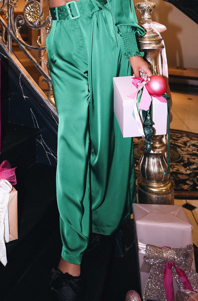 emerald green satin pants
