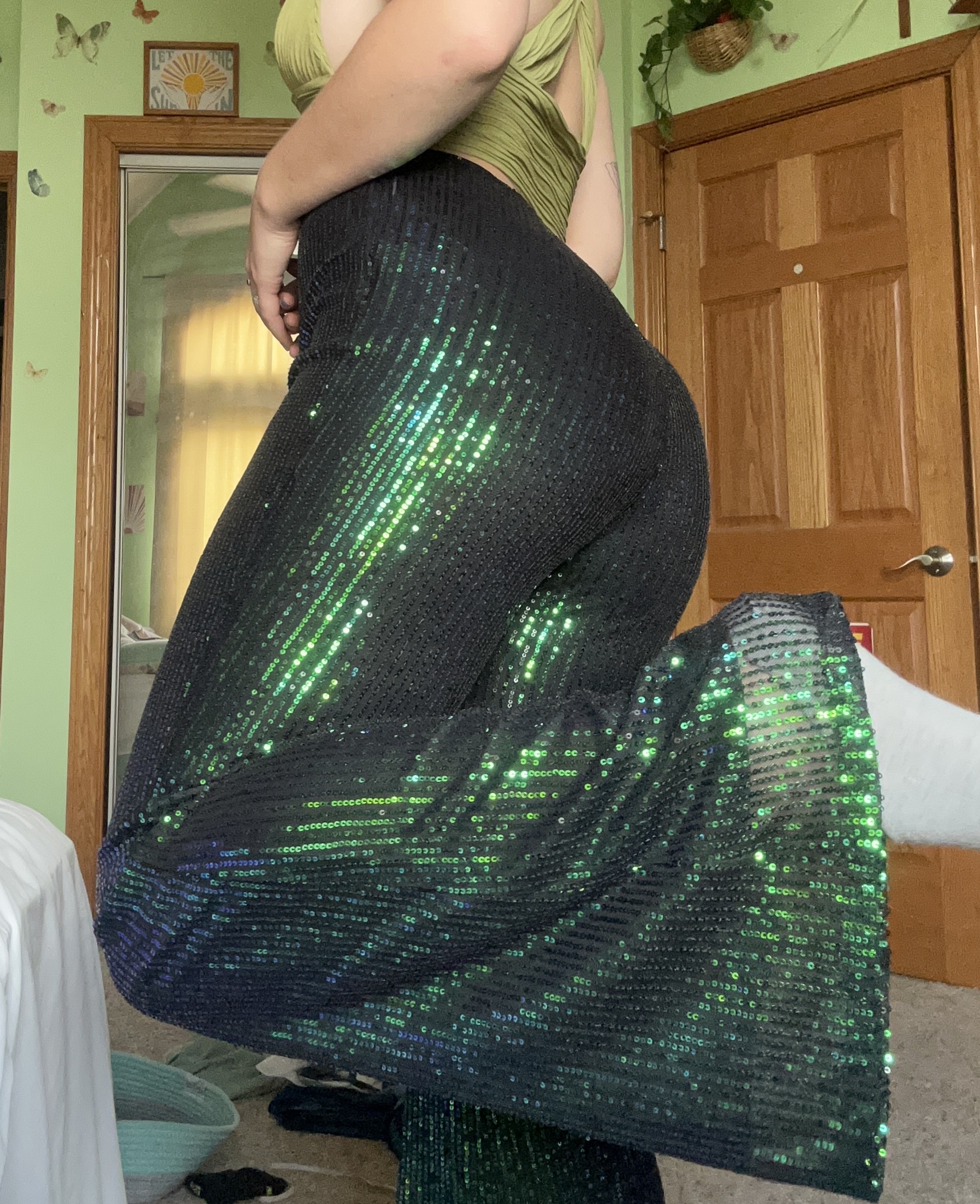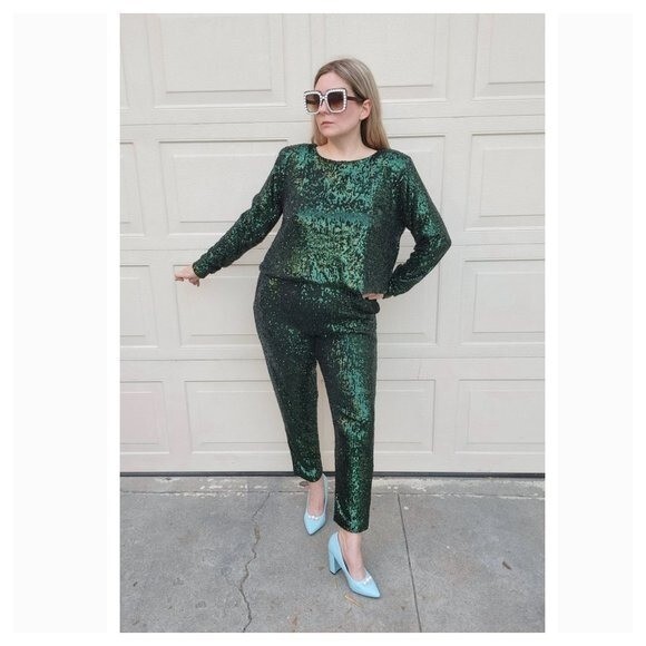 emerald green sequin pants