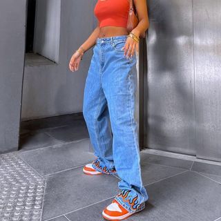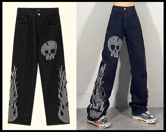 flame print jeans