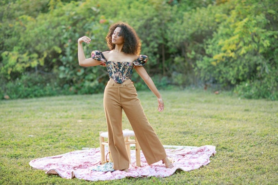 flared cream trousers