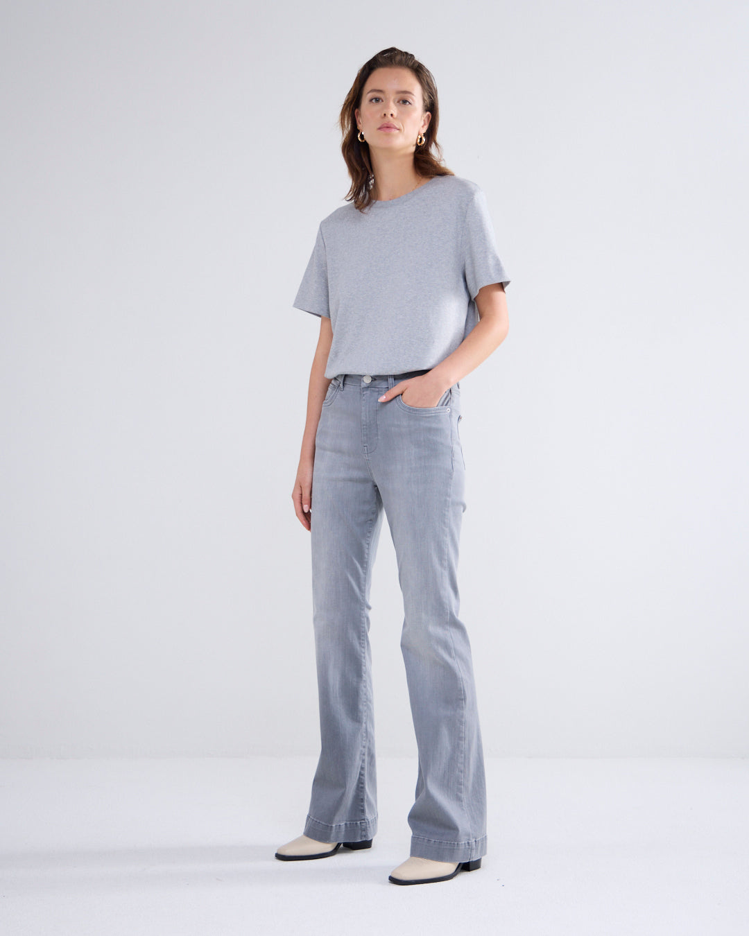 flared jeans grey