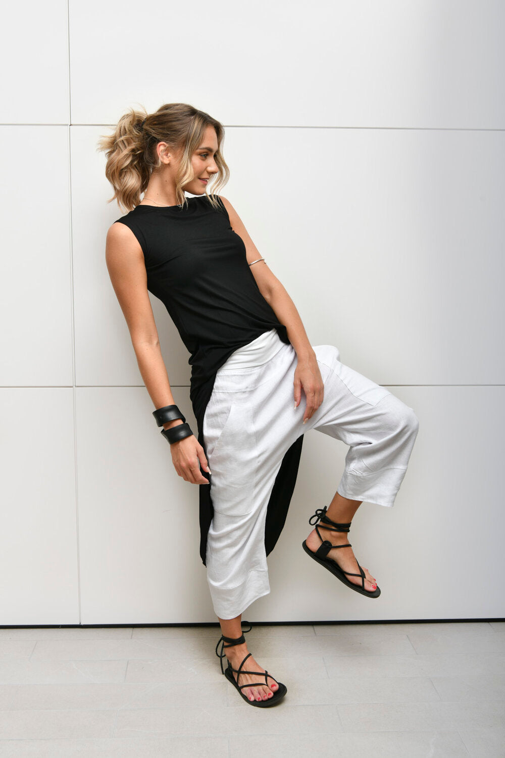 foldover linen pants