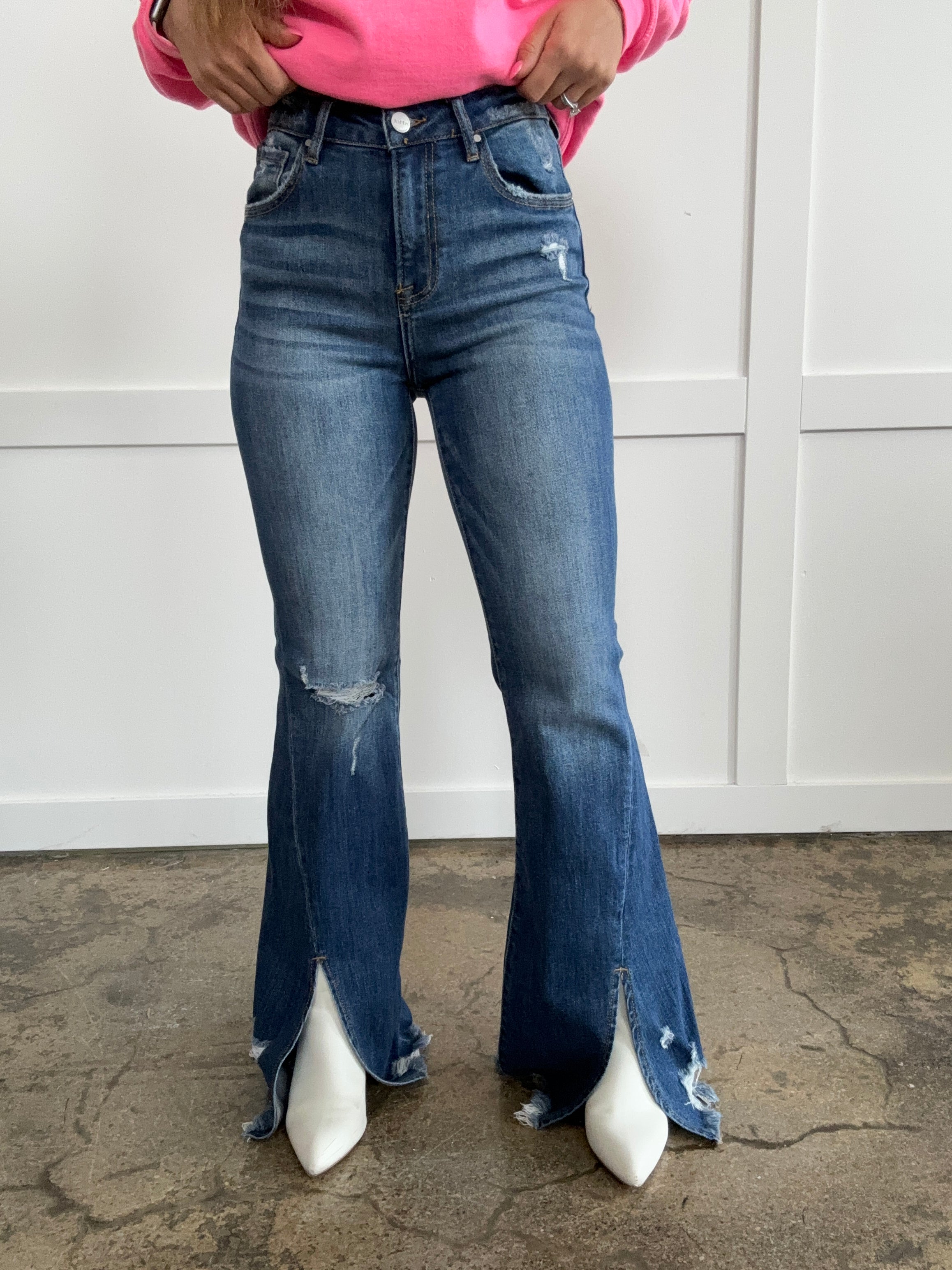 frayed hem bell bottom jeans