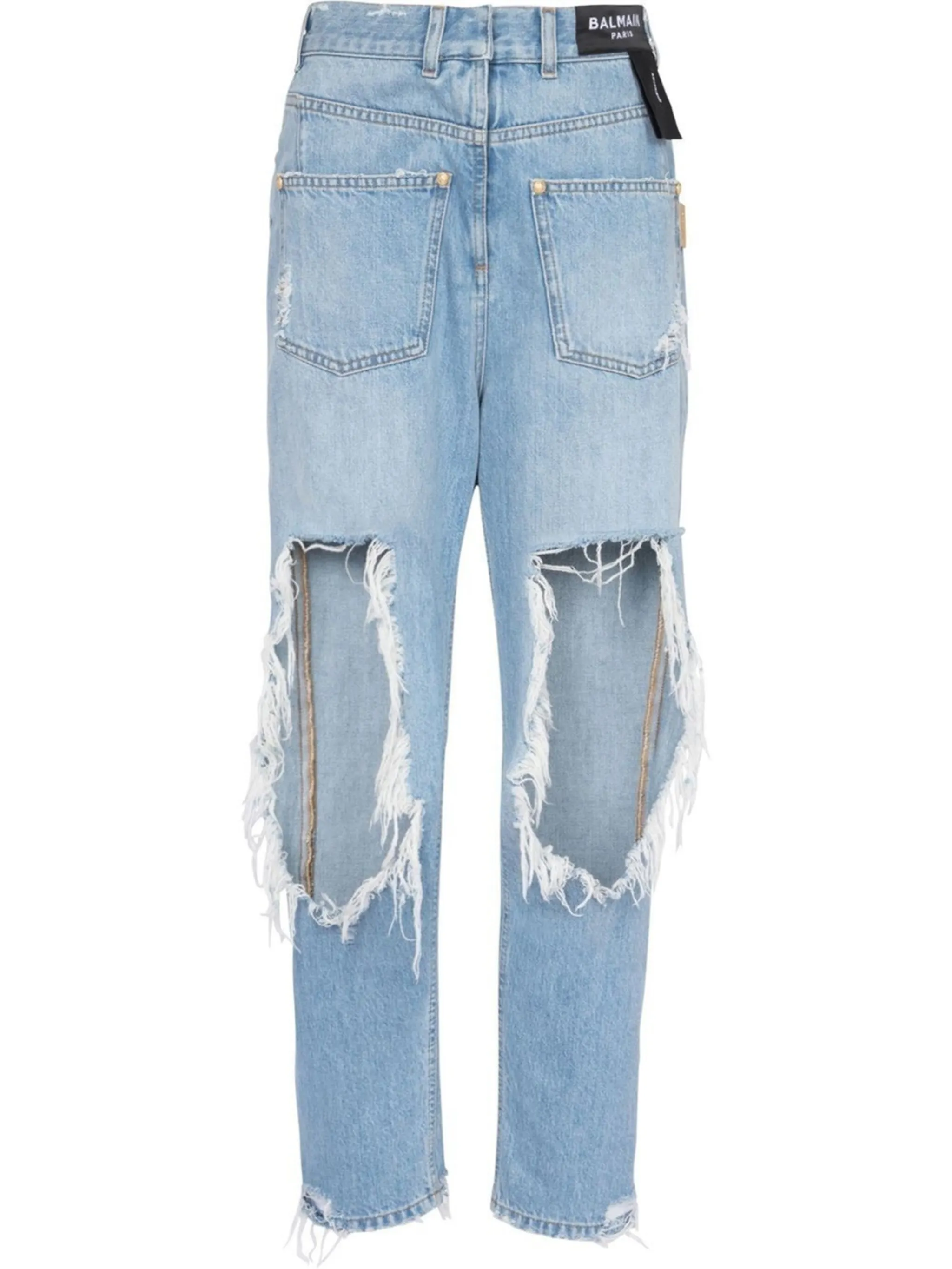 front and back distressed jeans