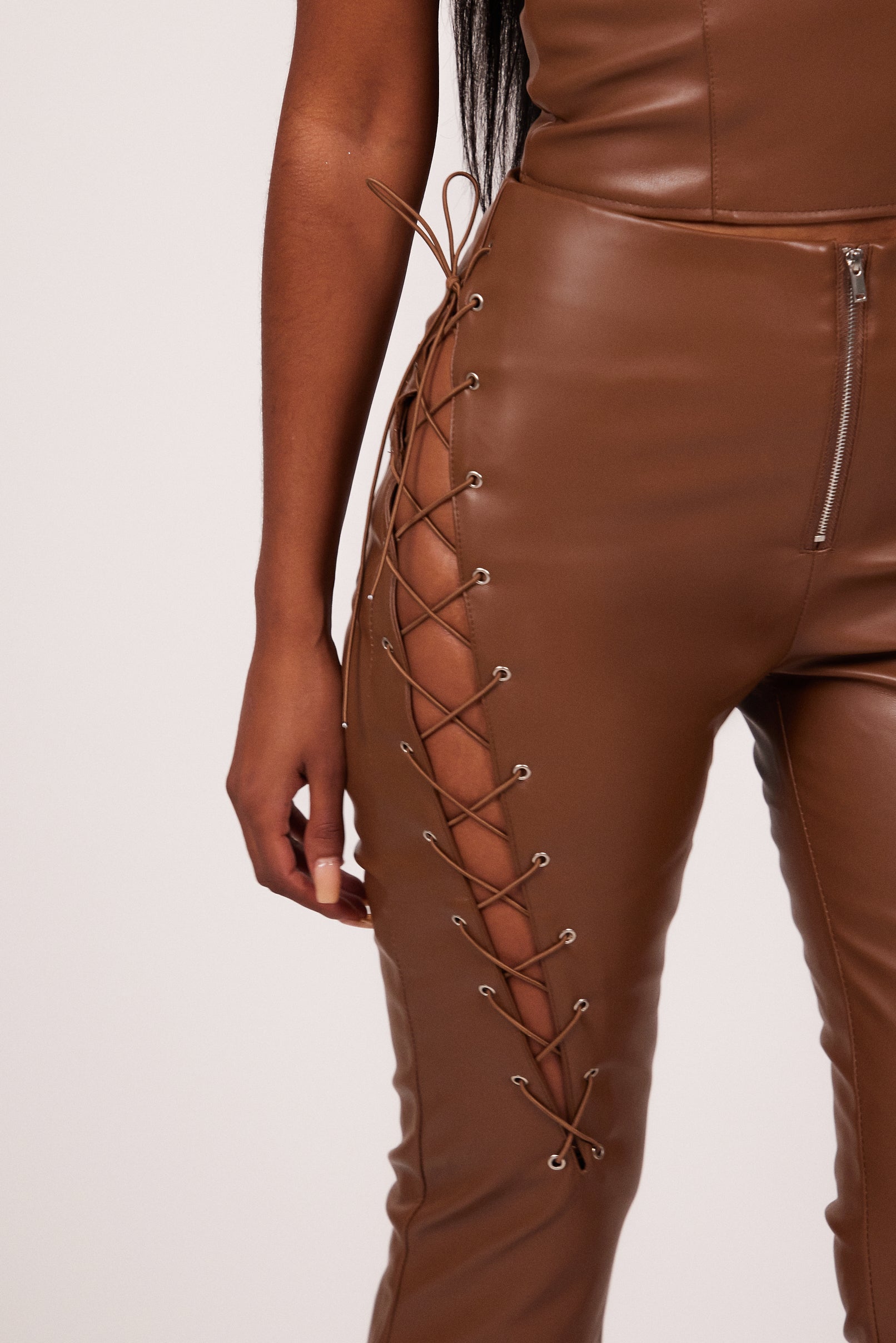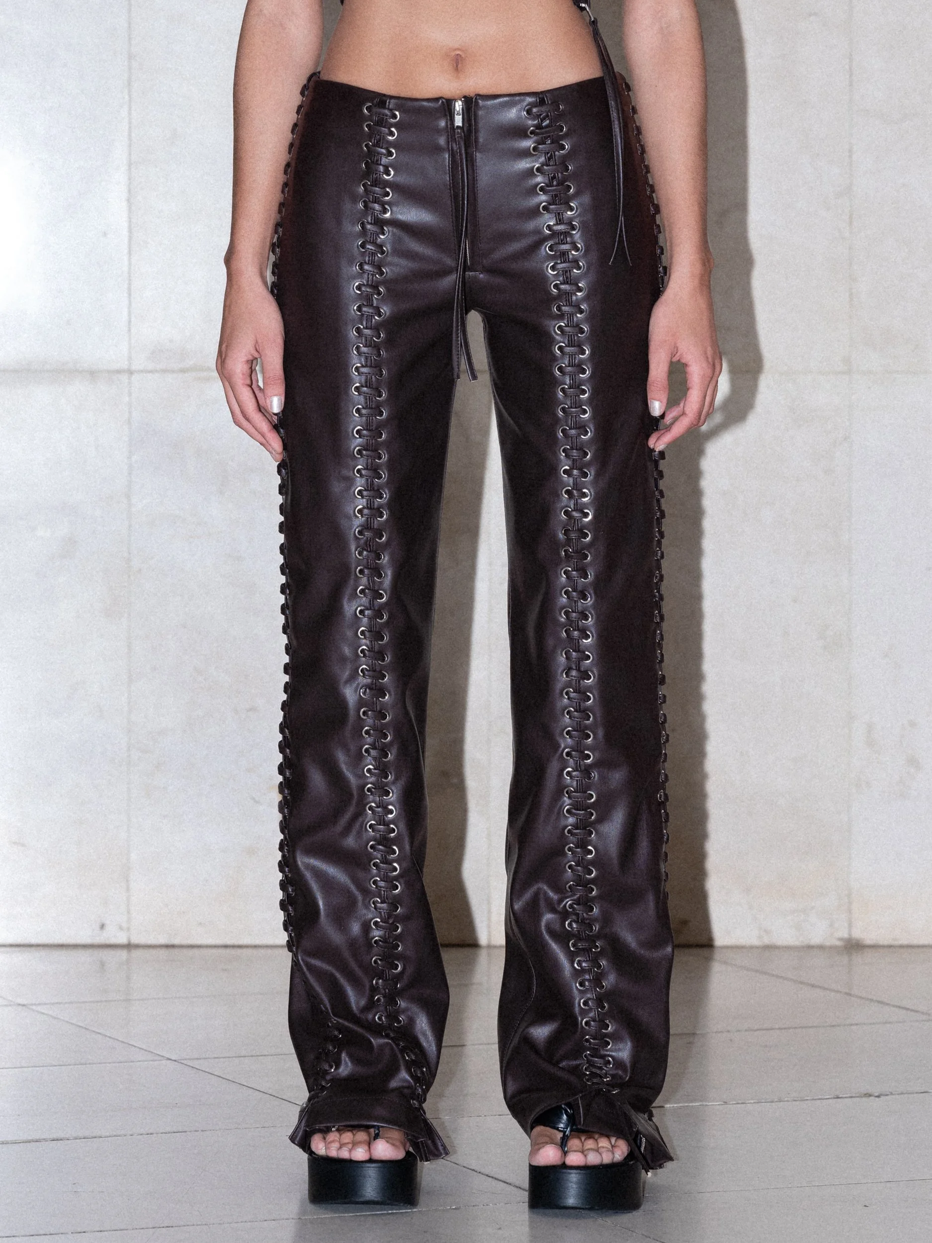front lace up leather pants