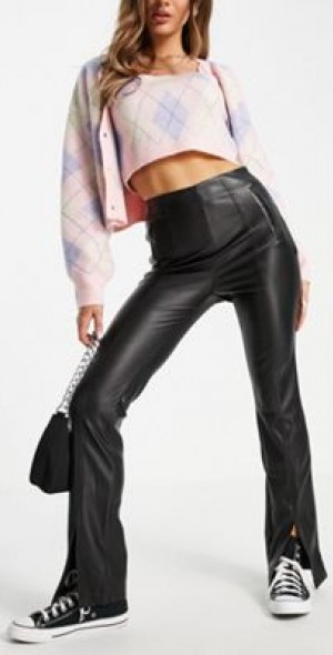 front split leather pants
