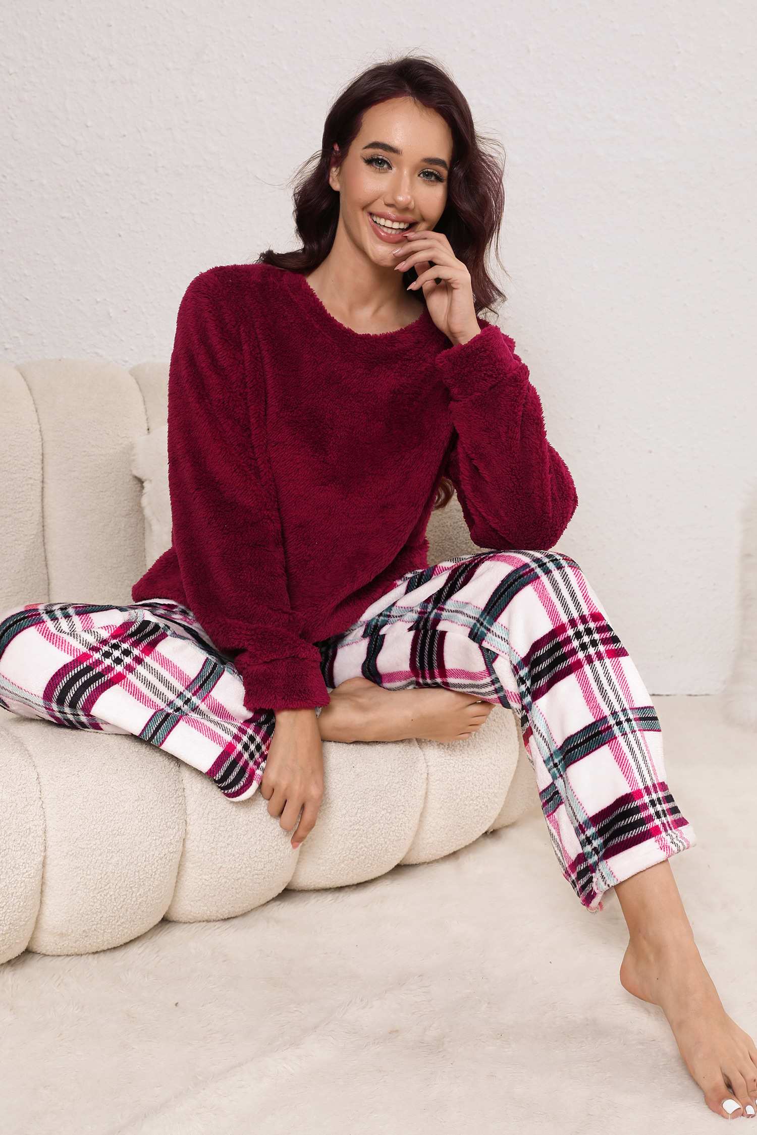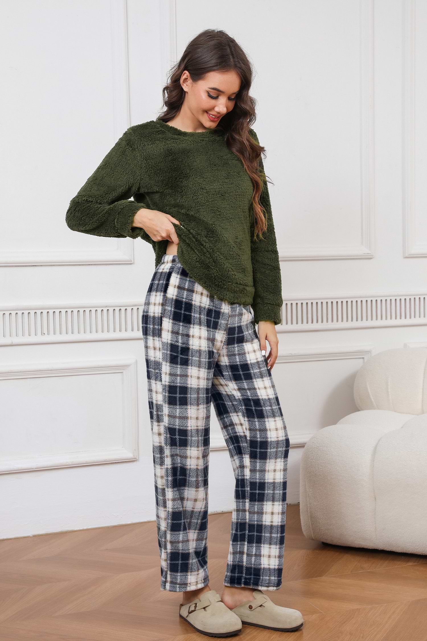 fuzzy plaid pajama pants